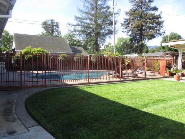 This spacious single level 3-bedroom, 3-bath home offers 2,458 sq ft of comfortable living space. Kitchen features tile countertops, large center island, builtin double electric ovens, JennAir cook top w/ grill, microwave, dishwasher, garbage disposal, trash compactor. Ideal kit for meal preparation and entertaining. Pass thru open to great rm from kit plus a breakfast bar Flooring throughout the home includes hardwood, tile, carpet, and vinyl/linoleum. Huge great room w/vaulted ceiling is equipped with a gas-burning freestanding stove, 2 skylites, builtin wet bar equipped with ice maker & bar fridge. This room is large enough to be divided to create even more usable space! Separate formal dining room offers full wall builtin buffet w/ upper glass door cabinets to show off the pretties! Detached three-car garage is perfect for ADU conversion w/ private alley access-you'll never know their is someone living there & still have a garage! Heated gunite pool offers ample sunning areas around the pool plus safety fencing for piece of mind! Property offers the ultimate sun exposure.! Cabana offers shade, room for relaxing, entertaining and outdoor dining! Indoor laundry rm, central a/c, whole house fan plus ceiling fans. Formal living front of house-ideal for Holiday tree display!