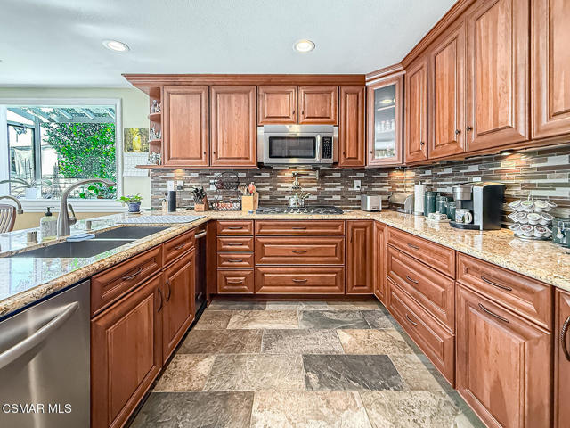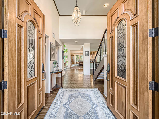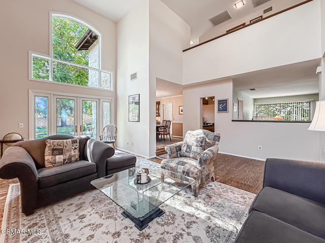 Located on a tranquil cul-de-sac in a wonderful neighborhood close to award-winning schools, excellent restaurants, shopping, and convenient commuter routes, this beautifully designed two-story home offers the perfect blend of craftsmanship and flexible living space. Boasting approximately 3,185 sq ft the thoughtfully designed floorplan provides both openness and versatility.Enter through the double doors into a spacioius foyer that leads to an open living area with soaring ceilings, a lovely fireplace, and a wall of glass featuring French doors and high windows that fill the home with natural light. A stylish bar with wine refrigerator elegantly separates the living room, dining room, and family room, creating a perfect space for entertaining.The large family room opens to the backyard through a sliding door, while the spacious dining room features a large window overlooking the yard and connects to the kitchen through a convenient serving bar. Throughout this main living area you will find beautiful wood floors and plantation shutters.The remodeled kitchen features custom cabinetry with pull-out drawers, two pantries, granite countertops, stainless steel appliances, a 5-burner gas cooktop with pot filler, double ovens (standard and convection), microwave/convection oven, and a large refrigerator.Also on the main level is a private office that could easily be converted to a bedroom, adjacent to a beautifully updated bathroom with a large shower and exterior access- ideal for guests or future pool use. A separate laundry room includes a sink, generous storage, and a convenient ''Costco closet''. The two car garage offers additional storage.Upstairs the flexible floorplan continues with a huge loft perfect for a bonus room, playroom, game room, office, or hobby area, and it could easily be enclosed to create an additional bedroom. The spacious primary suite feautures two walk-in closets, a private balcony, and a large bathroom with dual sinks, a soaking tub, and separate shower. Two additional generously sized bedrooms share an updated bathroom with dual sinks and a tub/shower combination.The peaceful and private backyard is surrounded by concrete block fencing and features a beautiful jacaranda tree along with lemon and grapefruit trees. With plenty of space for a pool and multiple outdoor seating areas, it is an ideal setting for relaxing or entertaining.A truly special home in a fantastic neighborhood.