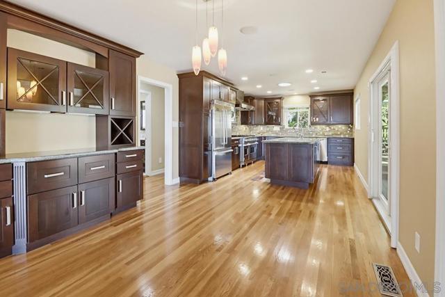 Beautiful 3 bedroom 2 bath home with an amazing west facing near panoramic view located on a cul-de-sac!! SOLAR LEASE IS PAID OFF!!!! Featuring gorgeous hard wood floors throughout the living space. Chefs kitchen with Viking 8 burner range, Viking refrigerator, and Viking dishwasher. Master bath boasts natural limestone in the shower and the second bathroom has elegant marble flooring. Enjoy the outdoor space with Trex Decking and TV. Laundry room in the house. Newer water heater. Close to freeways, restaurants, shopping, La Mesa Village, and The La Mesa Secret Stairs walking path. Don't miss this Gem of a Home!!