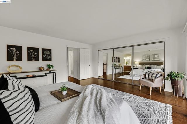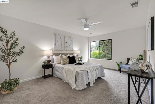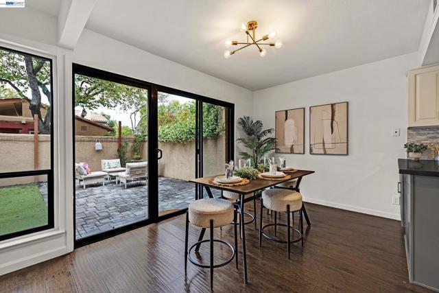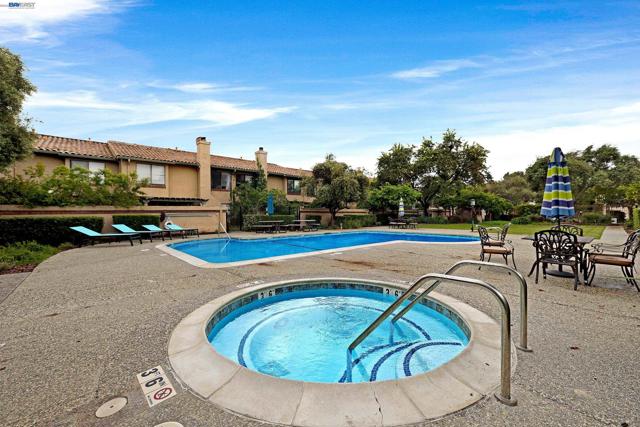 Discover this stylish townhome in the heart of Union City! The spacious living room features a cozy fireplace and expansive windows, while the dining area offers a sliding door leading to a private backyard patio with direct access to the pool, spa, & clubhouse. Perfect for entertaining, it truly feels like living in a resort! The updated kitchen has modern cabinetry, quartz countertops, & stainless-steel appliances. Upstairs, spacious Primary Suite is filled with light, opening to a private balcony, featuring mirrored closet doors. 2 additional spacious bedrooms overlook pool and spa; one offers dual closets while the other features a charming window seat. Notable upgrades include new carpets, beautiful wood laminate flooring, updated bathrooms, new interior paint, new lighting, and updated hardware, home is move-in ready. Enjoy an insulated garage with storage cabinets. The patio has pavers unless mature trees that creates a seamless indoor-outdoor vibe, while also low maintenance. Located in a quiet, vibrant community. Walking distance to great schools, parks & the Library. The home offers unparalleled access to the Dumbarton Bridge, I-880, and BART for seamless Bay Area commuting and airport travel. Residents enjoy premier convenience with top shopping, dining, just minutes.