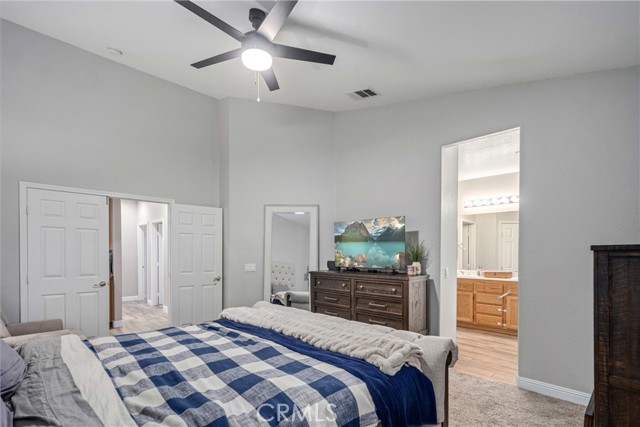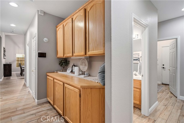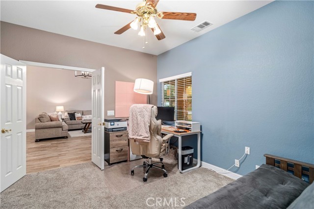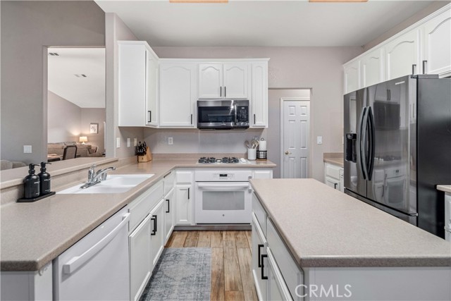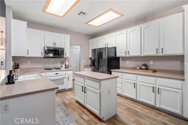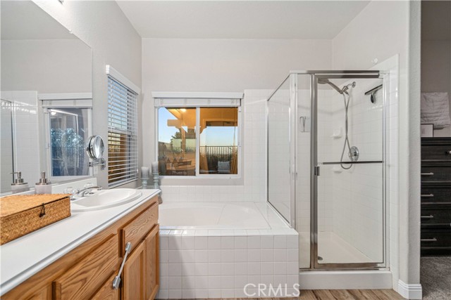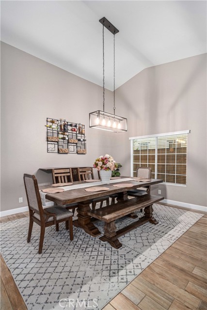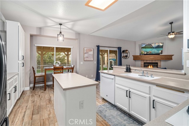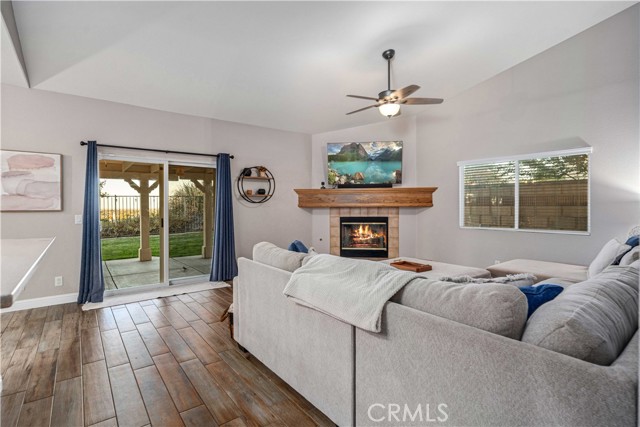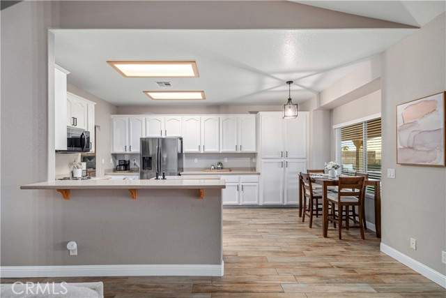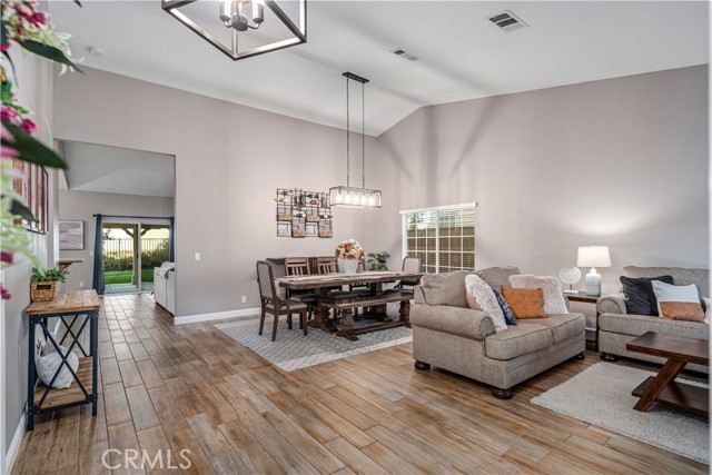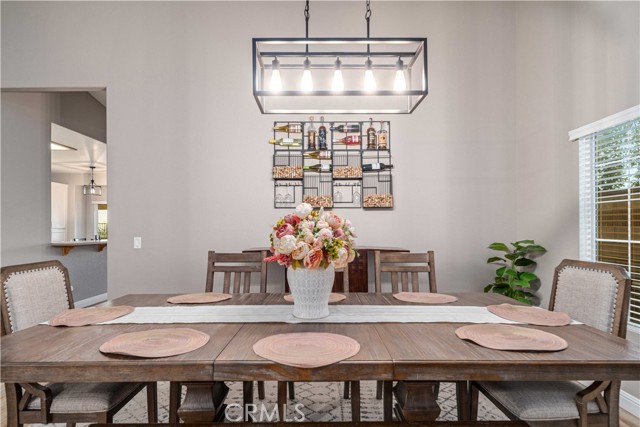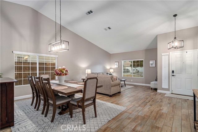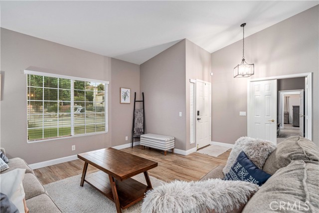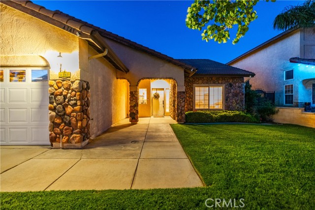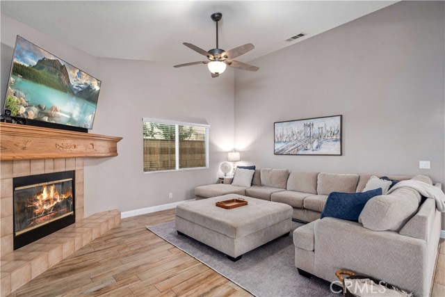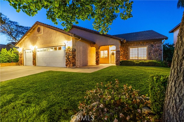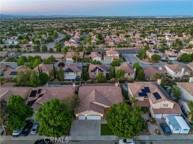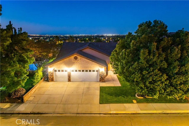***LIVE BEAUTIFULLY*** Single Story Palmdale Home w/ A 3 Car Garage, No Rear Neighbors, And Gorgeous City Light Views! Step inside to a bright and airy formal living and dining space featuring vaulted ceilings, an open-concept feel, and an abundance of natural light. The home boasts upgraded flooring throughout and stylish modern pendant lighting that elevates the entire space. Enjoy a cozy family room with a fireplace that opens seamlessly to the kitchen and backyard, perfect for both relaxing and entertaining. The kitchen offers a functional layout with a center island, bar seating, upgraded custom cabinetry, and ample storage, along with custom built-ins throughout the home for added convenience. Retreat to the spacious primary suite complete with high ceilings, a large walk-in closet, and a spa-like bathroom featuring a soaking tub and a separate enclosed glass shower. Bathrooms include dual vanities, adding both comfort and functionality. Step outside to a beautifully designed backyard showcasing an expansive covered patio with extended concrete hardscaping, ideal for outdoor dining and gatherings. The yard also features mature landscaping and a combination of block wall and wrought iron fencing that provides privacy while still capturing the stunning city light views. With no rear neighbors and an elevated setting, this home offers a peaceful outdoor retreat with plenty of space to relax or entertain. The front yard is just as inviting, featuring lush green grass and large mature trees that create beautiful curb appeal and a welcoming first impression. A rare single story opportunity offering a 3 car garage, privacy, and incredible views. This is Palmdale living at its best!