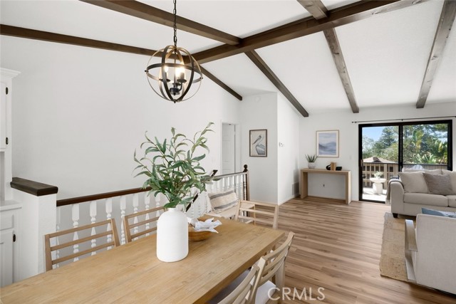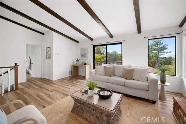 Located in the desirable Berwick Heights neighborhood of Lodge Hill, this captivating 3-bedroom, 2-bathroom home offers the perfect blend of coastal charm and forest serenity with treetop and peek-a-boo ocean views. On the upper level, the main living space welcomes you with an airy open floor plan, vaulted beamed ceilings, and a cozy wood-burning fireplace. Built-ins add character and functionality, while a sliding glass door leads to an expansive deck, ideal for entertaining guests or unwinding as you take in the ocean vistas. The sunlit dining area features a picturesque view window and a built-in hutch, creating a warm and inviting space. The kitchen is both practical and charming, offering generous counter space, abundant storage, a garden window, and a full suite of appliances including a refrigerator, gas stove, microwave hood, and dishwasher. Also on this level, the private primary suite serves as a peaceful retreat, complete with a walk-in closet and an ensuite bathroom featuring a walk-in shower. Downstairs, you’ll find two spacious bedrooms and a full bathroom, along with a convenient hallway laundry area. This level also provides direct access to the attached two-car garage, offering additional storage and easy backyard entry. Fresh interior paint and stylish luxury vinyl plank flooring give the home a crisp, contemporary feel. Set on a unique street-to-street lot, the property includes a detached two-car garage with its own entrance off Berwick Drive, perfect for extra vehicles, a workshop, or creative space. The backyard is fully enclosed with a custom perimeter fence and gated driveway, offering privacy and versatility with room for gardening, pets, play, or even potential RV parking. As an added bonus, the property includes a Minor Use Permit/Coastal Development Permit, opening the door to even more possibilities. The Minor Use Permit allows the owner to turn the detached garage into a 600 square foot guesthouse with a second-floor balcony. This is your opportunity to enjoy coastal living with space, privacy, and unforgettable views, all in one exceptional Cambria home.
