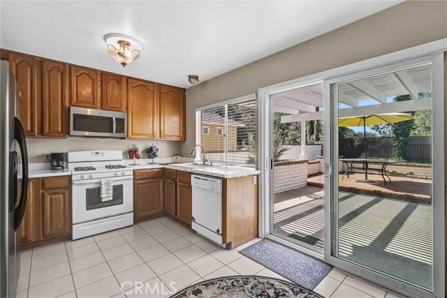 This well-appointed 4-bedroom, 2-bath residence—featuring a highly desirable main-level bedroom and full bath—is ideally situated on a quiet cul-de-sac in the heart of Mission Viejo. The home offers a functional, light-filled floor plan with oversized rooms, fresh interior paint throughout, and a warm, inviting gas fireplace. The main level flows seamlessly from the living area to the kitchen and breakfast nook, with direct access to the backyard, creating an effortless indoor-outdoor living experience. The primary suite is conveniently located downstairs, complete with sliding glass door access to a private patio—an uncommon and valuable feature in two-story homes. Upstairs, you’ll find three generously sized bedrooms, each with ample closet space, along with a full bath. Step outside to a freshly updated covered patio with built-in gas BBQ connection—ideal for entertaining or relaxing—with additional space for customization or expansion. The property potential for extension, and sits on a spacious, private lot large back yard. Additional benefits include low property taxes and no HOA, aside from optional Lake Mission Viejo membership, offering access to boating, fishing, beaches, and community events. Centrally located near shopping, top-rated schools, and major freeways, this home combines comfort, flexibility, and long-term upside.