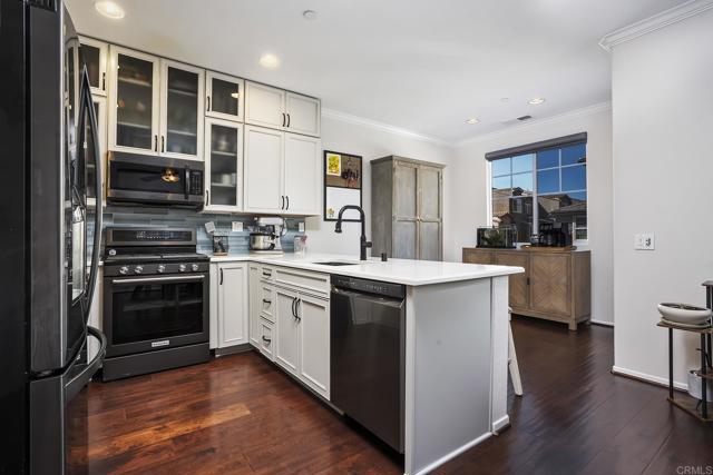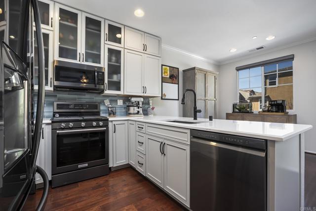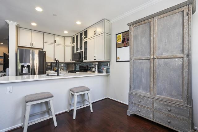 BEAUTIFULLY UPGRADED 4 BEDROOM, 4 BATH HOME WITH 1977 SQ FT IN THE HIGHLY SOUGHT AFTER NEIGHBORHOOD OF RIVERWALK IN SANTEE AND THIS ONE IS LOADED, INCLUDING WOOD FLOORING, CROWN MOLDINGS, DUAL PANE WINDOWS, PAID FOR SOLAR, AUTOMATIC BLINDS, GORGEOUS REMODELED KITCHEN WITH QUARTZ COUNTERS, BREAKFAST BAR ALONG WITH BLACK STAINLESS APPLIANCES, PRIVATE BALCONY, FORCED A/C AND HEAT, CEILING FANS, RECESSED LIGHTING, LARGE LIVING ROOM, LOTS OF WINDOWS WITH VIEWS TO THE GREENBELT, SPACIOUS GUEST BEDROOMS, MIRRORED WARDROBE DOORS, PRIMARY BEDROOM HAS A WALK IN CLOSET, PRIMARY BATH HAS A DUAL VANITY AND A SOAKING TUB/SHOWER, LOCATED NEAR SCHOOLS, YMCA, SHOPPING AND RESTAURANTS. HOA AMMENITIES INCLUDE TOT LOT, CLUBHOUSE, GREENBELTS, POOL, SPA AND MUCH MORE.