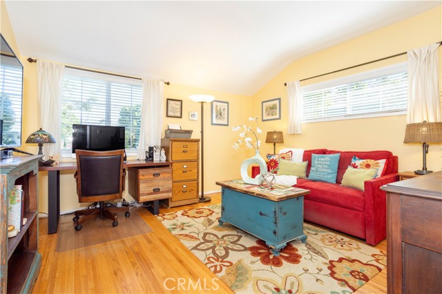 Welcome to this charming 3 bedroom, 2 bathroom home in the highly sought after Valley Village neighborhood, offering incredible curb appeal and a true move-in-ready experience. This stunning home isn’t just a place to live, it’s a star in its own right! Over the years, it’s taken the spotlight in multiple television productions, including a rare and memorable feature in a 2006 Super Bowl ad. Perfectly situated on a quiet street, this property greets you with a long red-ribbon brick driveway that leads to a detached 2-car garage, providing ample parking for multiple vehicles. The inviting red brick front patio sets the tone for the warmth and character you’ll find inside. Step through the front door to discover beautiful hardwood floors running throughout the home, complemented by a captivating double sided fireplace and oversized windows that fill the space with natural light. The dining area flows seamlessly into the galley style kitchen, which has been tastefully updated with abundant cabinetry for storage. At the end of the kitchen, a built in desk offers the perfect spot for work, school projects, or extra meal prep. A separate laundry area accommodates a side by side washer and dryer and includes a convenient door to the backyard. The primary bedroom is generously sized, featuring large closet and a personal wall AC unit, ideal for comfortable and efficient nighttime cooling. The second bedroom delights with cove ceilings, hardwood floors, and a bright view of the charming neighborhood. The hallway bathroom is well kept, offering a stand up shower, soaking tub, generous counter space, a wall heater, an exhaust fan, and plenty of natural light. The third bedroom, (Title shows 2 bedrooms), is currently being enjoyed as a versatile second living room, complete with access to the fireplace, a half-bathroom, a closet, and the kitchen. This flexible space can easily be converted back to a bedroom or tailored to your family’s needs. Out back, the home truly shines as an entertainer’s haven. The backyard patio feels like an additional living space, shaded by a gorgeous oak tree and surrounded by grass, a garden bed, and a tranquil bird sanctuary. Enjoy relaxing evenings in the jacuzzi or peaceful afternoons in the shade of the oak tree. The location is truly unmatched, nestled in a charming, picturesque neighborhood with inviting sidewalks perfect for leisurely strolls and just moments from major freeways. Close to NoHo West Mall and Trader Joe’s.