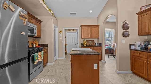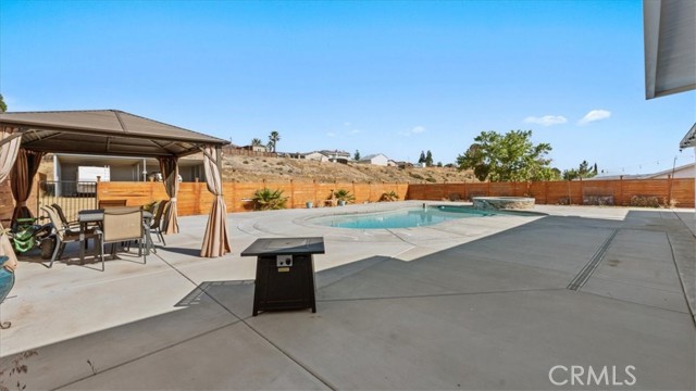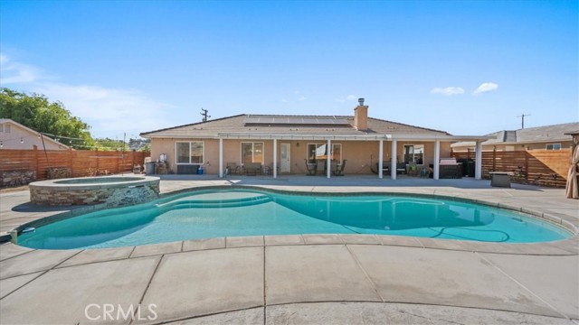 Check out this home on Alston Ave in Hesperia, where style, comfort, and backyard living come together in this beautifully upgraded newer home built in 2016. From the moment you walk through the door, you are greeted by high ceilings, an open airy feel, and a spacious living room anchored by a cozy fireplace, perfect for relaxing or hosting friends and family. The kitchen is truly the heart of the home, featuring a massive island, breakfast bar, walk in pantry, tons of cabinet and counter space, and two dining areas, giving you flexibility for everyday living or entertaining on a larger scale. The split floor plan offers privacy, with a spacious primary suite tucked away, complete with a soaking tub, separate shower, and a large walk in closet, while three additional bedrooms and a guest bath sit on the opposite side of the home. Indoor laundry and a huge three car garage provide all the extra space you need for storage, tools, and toys. Step outside and this is where the home really shines, enjoy your own private backyard retreat with a large covered patio, additional gazebo, and a stunning inground pool and spa with a lagoon step, perfect for those hot summer days. The property is fully usable and cross fenced, with easy RV access and a large RV carport, giving you room for all your extras. Solar helps keep energy costs down so you can enjoy your pool all season long. Located in a desirable Mesa area, this home checks all the boxes for space, function, and lifestyle.