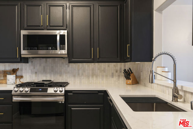 Set within a 16-unit boutique building, this fully renovated, two-level northwest corner 3bd + 2.5-bath townhome, offers city light and mountain views extending toward the Hollywood Hills and Century City. Deco-inspired curves and details balance an urban sensibility with a warm, inviting feel in a central Miracle Mile location. Floor-to-ceiling arched windows bring in beautiful afternoon light, creating a bright and open feel throughout the home. The main level features a spacious step-down living room and a separate, generously sized dining area, along with a dedicated bar area just off the living room. The newly redone kitchen offers a clean, open, modern design, functional layout, and includes a wine fridge and stainless steal appliances. Upstairs, all three bedrooms provide comfort and flexibility. The primary suite includes ample closet space and a spa-like bath with dual vanities, soaking tub, and separate shower. Additional highlights include a dedicated in-unit laundry room, gated tandem parking, and a secure, well-maintained building with low HOA dues. Located in one of LA's most vibrant neighborhoods, you're just moments from LACMA, the Academy Museum, the evolving Miracle Mile corridor, The Grove, the Original Farmers Market, and a dynamic mix of cafes, restaurants, and shops.