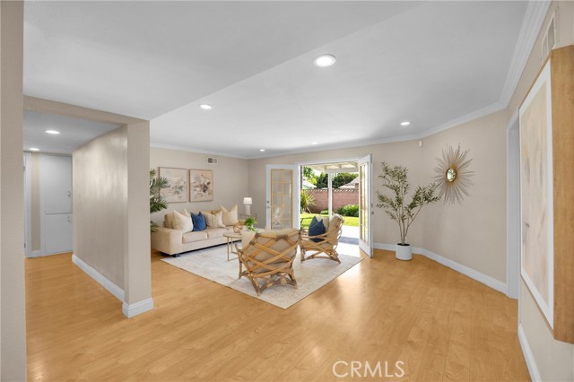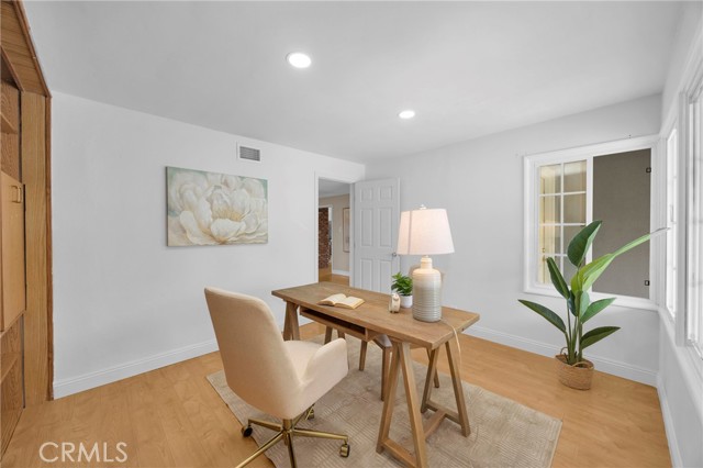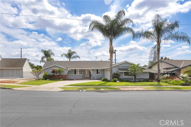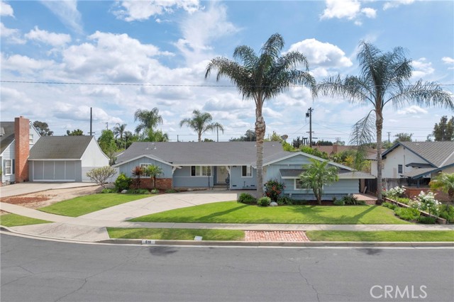 Tucked away on a quiet cul-de-sac bordering Fullerton, this inviting single-story home offers 4 bedrooms, 1,678 square feet of living space, and a generous 7,938 square foot flat lot. Located just minutes from California State University, Fullerton, with easy access to major freeways, shopping, and dining, the home blends everyday convenience with a peaceful residential setting. Filled with natural light, the home features a thoughtful split-bedroom layout with a private primary suite set apart from the additional bedrooms. The fourth bedroom, currently used as an office, includes recessed lighting and pleasant neighborhood views. The heart of the home offers spacious kitchen and dining areas, complemented by a charming original brick fireplace. The family room opens seamlessly to the backyard through double French doors, creating an ideal indoor-outdoor flow for entertaining or relaxing. Additional highlights include solar panels, a water softener, newer water heater, and updated AC and furnace. A separate laundry room with side yard access provides flexibility, while the side yard itself offers potential for additional outdoor living space. The backyard is neatly maintained for easy upkeep. Offering a combination of comfort, location, and opportunity, this home is ready to be enjoyed.