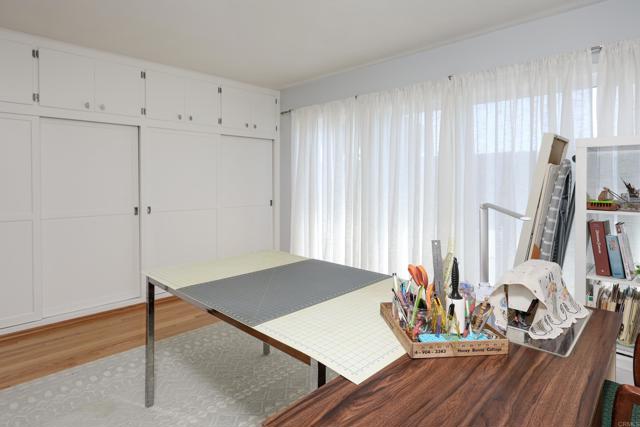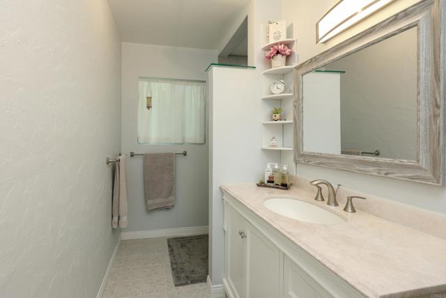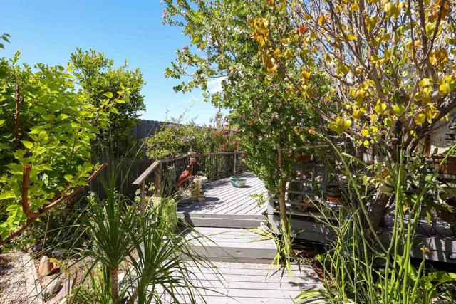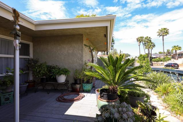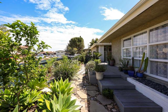Beautifully upgraded corner-lot home in a prime location near San Diego State University. This exceptional property showcases lush, meticulously maintained gardens featuring a variety of exotic plants and mature fruit trees, including a producing passion fruit vine, kaffir lime, lemon, apricot, and fig. The home is equipped with a full Halo water filtration system, a demineralization system designed for San Diego’s hard water, and an energy-efficient recirculating tankless water heater. Upon entry, you’re welcomed by gleaming oak hardwood floors in excellent condition, creating a warm and inviting atmosphere. The custom kitchen features high-end cabinetry, designer lighting, marble and granite countertops, and a gas range—ideal for both everyday living and entertaining. A dedicated dining area with sliding glass doors opens to a serene, garden-inspired side yard. The spacious living/family room is filled with natural light, featuring expansive windows and sliding doors leading to a wraparound deck, perfect for indoor-outdoor living. An oversized fireplace serves as a stunning focal point while providing ample warmth on cooler evenings. The generously sized primary suite is bright and airy, complete with sliding doors that open to the deck. The remodeled primary bathroom offers a luxurious retreat, while the secondary bathroom maintains its classic charm. Two sheds for extra storage convey. This home combines comfort, character, and convenience with close proximity to shopping, dining, SDSU, and easy freeway access. A truly special property ready to welcome its next owner.