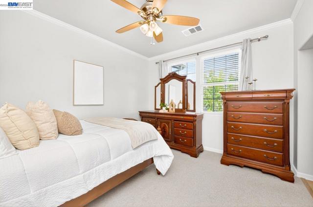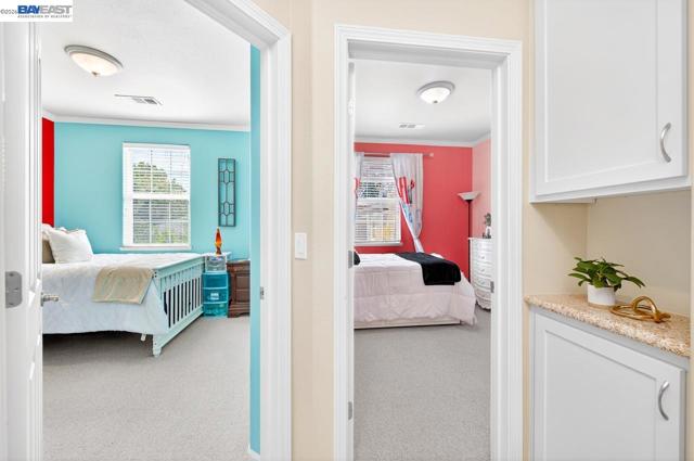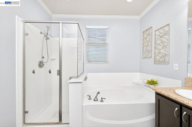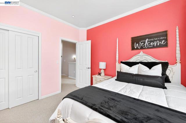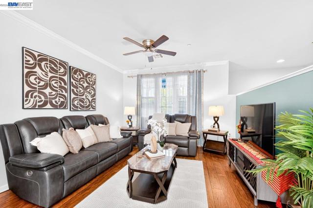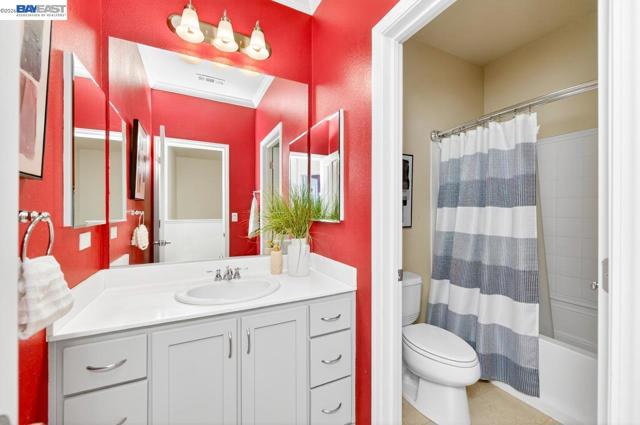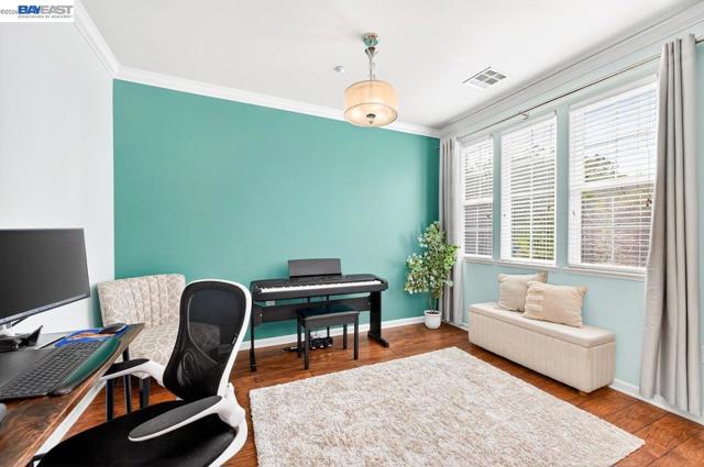 Move in Ready! Welcome to this beautifully maintained, East facing home, in the heart of Pleasanton, offering 3 bedrooms, 2.5 baths, and 1,848 sq ft of thoughtfully designed modern living space. The updated kitchen features white cabinetry, stone countertops, tile backsplash, stainless steel appliances, and a large center island with bar-top seating—perfect for everyday living and entertaining. Dining space offers open kitchen concept living. Main level bathroom. A bonus office/room is conveniently situated downstairs and provides flexibility for remote work or study. The spacious primary suite includes a large walk-in closet and an ensuite bath with double vanity, soaking tub, and private water closet. Additional highlights include solar panels, electric car charger and attached 2-car garage. Desirable location with close proximity from vibrant downtown Pleasanton, shopping, dining, & top schools!