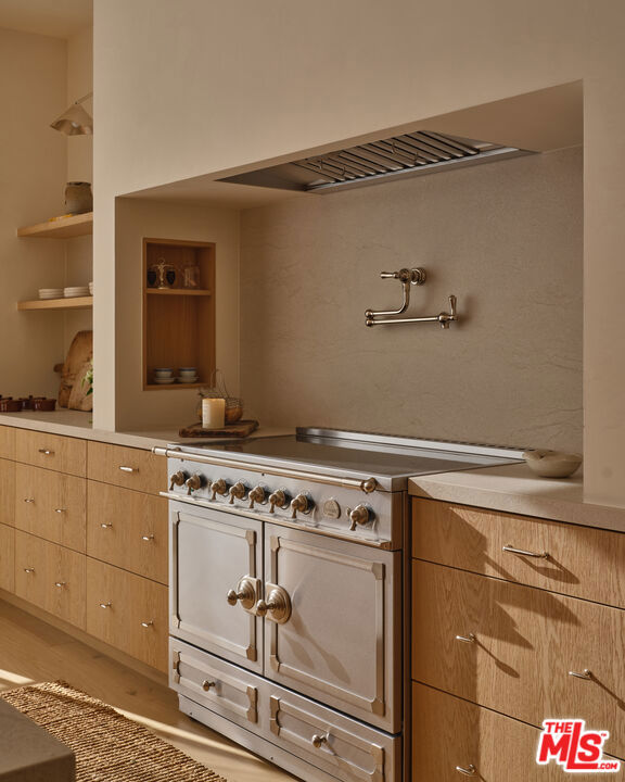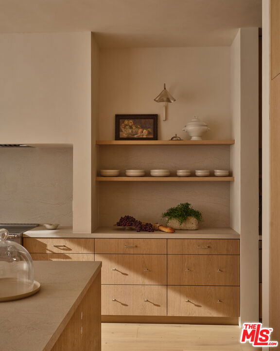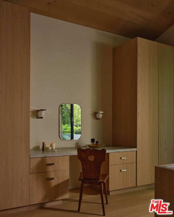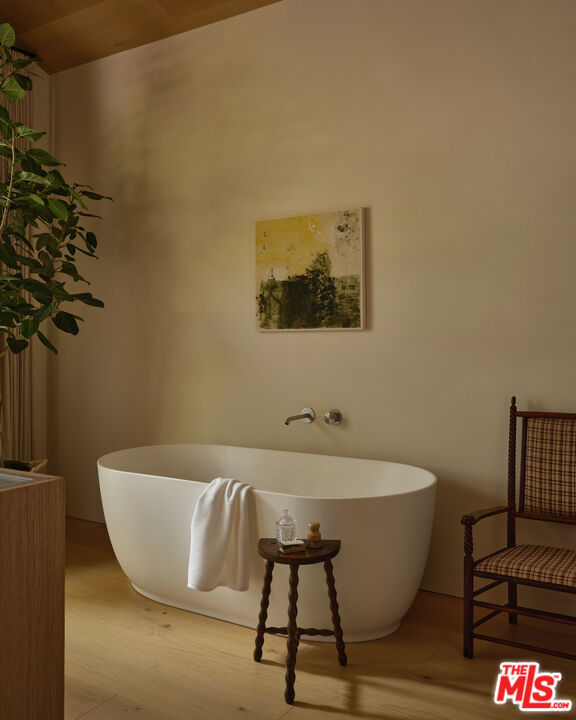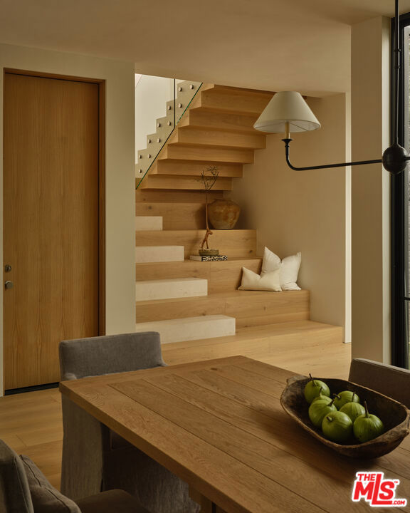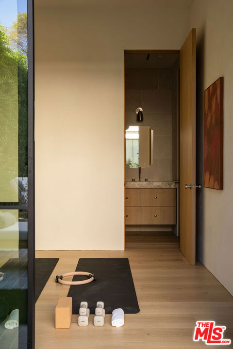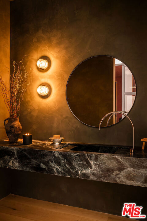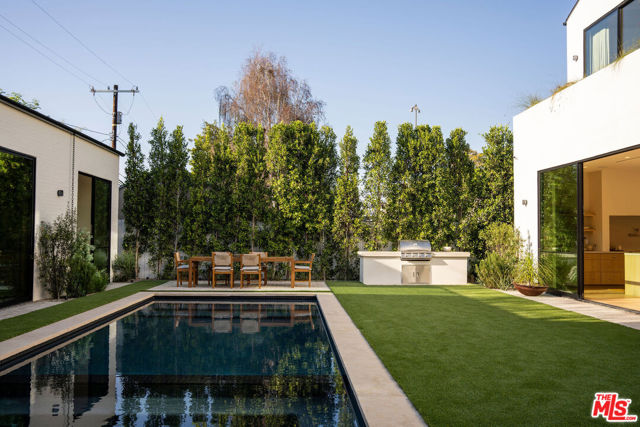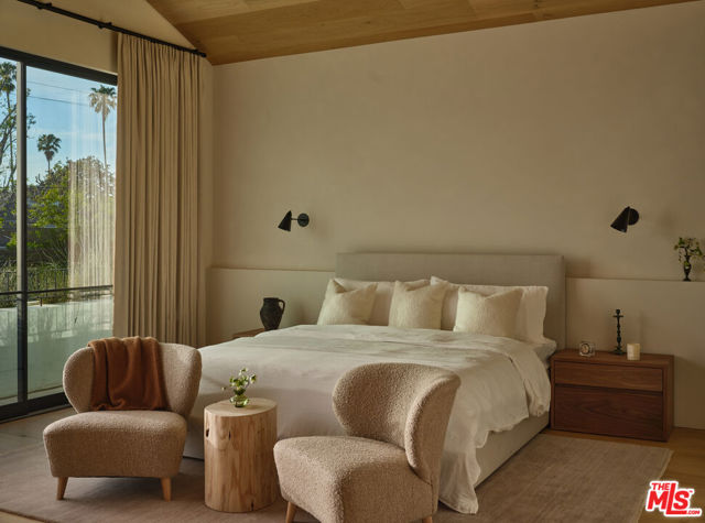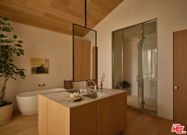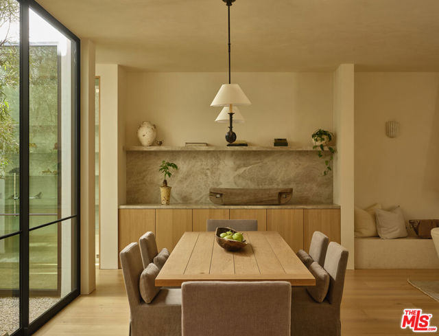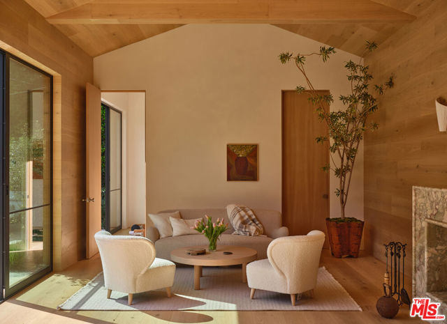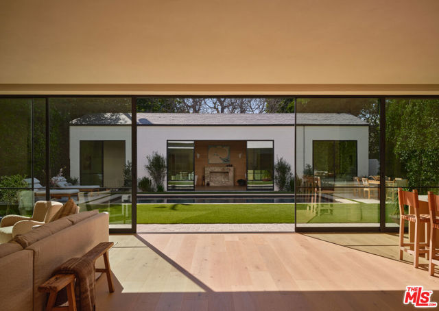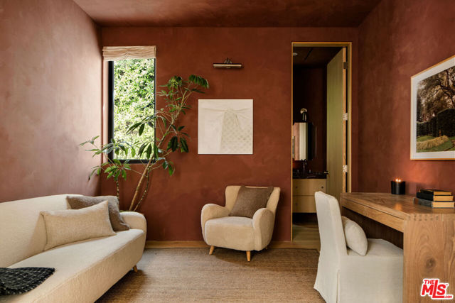Grounded, elegantly livable, and easy to settle into, Ventura Canyon was designed and built by SLS Properties Inc., with interiors by Jenni Kayne. The home leads with material, proportion, and quiet confidence, featuring a restrained palette of plaster, warm wood, and veined marble layered in a way that feels naturally cohesive. At the center of the home, a sunlit atrium elevates the space and brings in an abundance of natural light, creating a sense of openness and connection throughout the main living areas. The layout is both thoughtful and functional, offering an en suite office on the main level and four en suite bedrooms upstairs. The spacious primary suite is generous in scale and features dual balconies along with a beautifully appointed bath complete with a floating vanity and mirror, soaking tub, large shower, and dedicated makeup stationan everyday retreat that feels like a spa. On the main level, large sliding doors create an effortless connection to the outdoors, with a pool and inviting spaces designed for both everyday living and entertaining. A fully separate ADU offers two additional en suite bedrooms, providing ideal flexibility for guests, extended family, or creative use. Though newly built, the home carries a sense of warmth and permanence close to the city, yet just removed enough to feel private, comfortable, and quietly refined.
