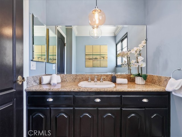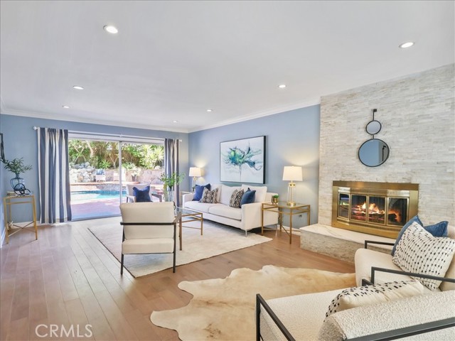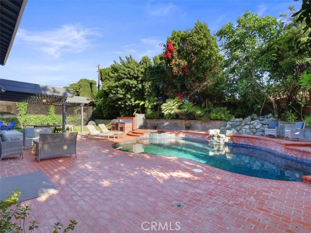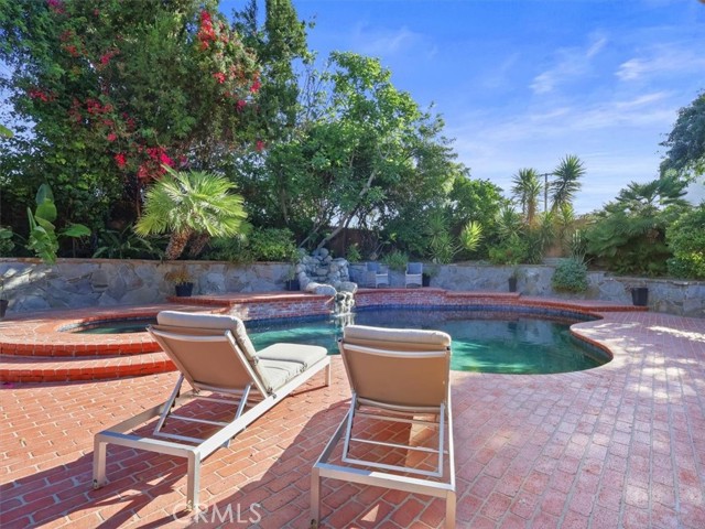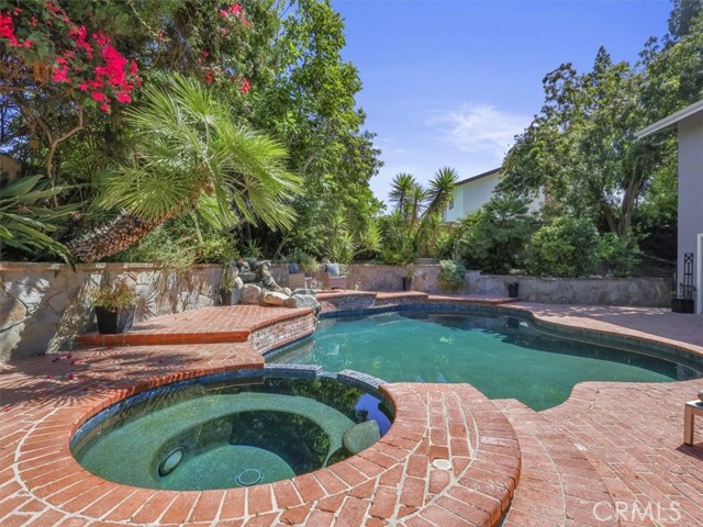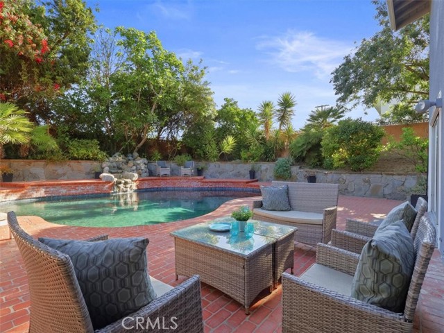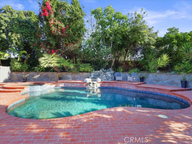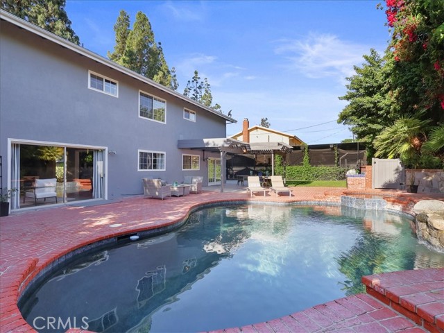Impressive Colonial-style home with curb appeal on a prime double-cul-de-sac in sought-after West Hills neighborhood. Expansive 11,000+ sq. ft. lot with a fun filled BATTING CAGE! This beautifully updated 4-bedroom, 2.5-bath home of approx. 2,424 sq. ft. offers warmth, charm, and resort-style living. The front yard features brick walkways, lush landscaping, and garden areas for growing your own herbs and vegetables. Inside, enjoy a light and bright flexible floor plan with engineered hardwood floors on the first level and refinished hardwood on the staircase and second-floor hallway. The spacious living room with recessed lighting boasts a floor-to-ceiling stacked stone gas fireplace and oversized sliding doors opening to a backyard paradise with a heated pebble-tech pool, spa, red brick decking, rock waterfall, lush landscaping, flagstone walls, covered outdoor workout area, space for shooting hoops and a grassy yard. The FDR flows to updated kitchen with granite counters, ss appliances, designer-painted cabinets, shiplap detailing, a breakfast bar, and a spacious eating nook with sliding glass doors to a covered patio and a built-in BBQ. A large bonus room in the garage is set as a family room or can be a playroom/office. Upstairs, the spacious primary suite features treetop views, two sets of new mirrored closets, new carpet and an en-suite bathroom with double sinks and shower. Three additional bedrooms are well-proportioned with 2 bedrooms with new carpet and large new mirrored closets. Updated hallway bath has double sinks and shower-over-tub. Additional highlights include new interior/exterior paint, newer roof, tankless water heater, Nest thermostat, first-floor hallway with recessed cubbies, and a 4-car driveway. Proximity to top rated schools, parks, shopping, dining and freeways. This remarkable home is perfectly set for unforgettable moments with indoor-outdoor living in a picturesque setting. Score a home run!
