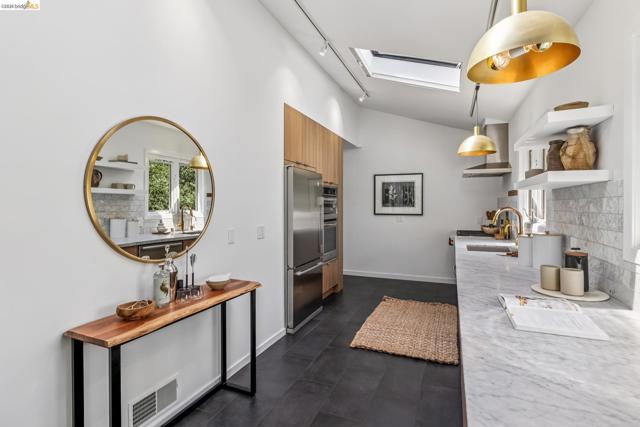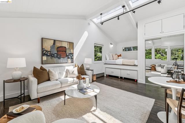 Located down a quiet tree-lined street, you will find 2095 Mastlands Drive. This stunning 3+ bedroom, 3 bathroom with ADU is a Mid-Century Masterpiece. The welcoming foyer leads to the open floor-plan living area with oversized windows flooding the space with natural light. The adjoining dining room is equally inviting, with chic custom lighting and glass sliders leading out to a sizable deck. Prepare to be impressed by this chef’s kitchen! This kitchen is a home cook’s dream boasting stylish solid brass fixtures, fashionable lighting and stainless steel appliances. Down the hallway, you will find 2 spacious bedrooms and one oversized bathroom. Stroll downstairs to find the luxury primary suite! On this level, you will also find the laundry room with ample storage. As you follow the exterior path you will approach the renovated 2-story garage. Downstairs is the studio, perfect for a home office. Upstairs is the roomy, light-filled permitted ADU. Here you will find rich hardwood floors, ample storage, a full kitchen and bath. 2059 Mastlands sits on a large lot which has been thoughtfully landscaped with mature trees, flowering plants and fruit trees. There is ample parking and is located just minutes from markets, shopping, restaurants, public transportation and the freeways.