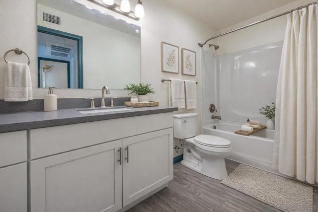 2nd floor VA approved, condo taken down to the studs & fully rebuilt in 2021. Open floor plan offers a seamless flow btw living, dining & kitchen areas. Kitchen features quartz counters & SS Samsung appliances. Vaulted ceilings in the living & dining areas create a spacious feel, while dual pane windows bring in natural light. Bedroom w/ large walk in closet & vinyl flooring throughout. Renovations include AC, electric panel, plumbing & more. Balcony w/ storage & community pool are a plus! Low maintenance living in an upgraded space, ready for its next owner.