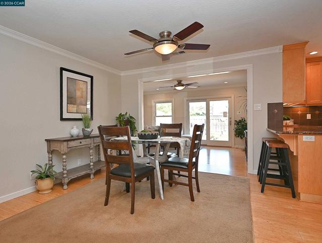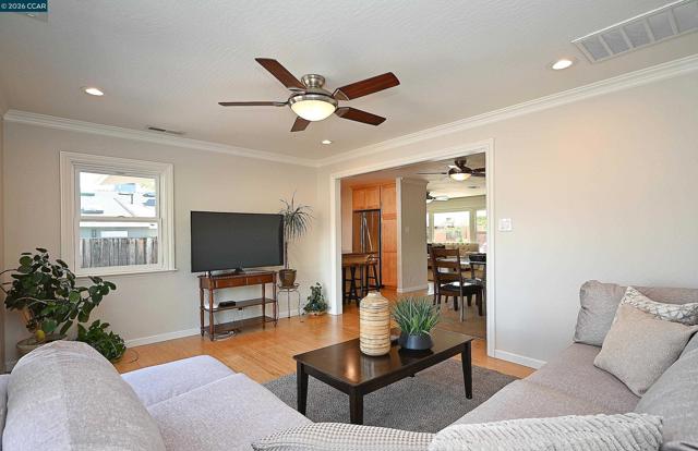 A standout feature of this property is the impressive detached 25x24 sq foot steel beamed shop with power—an investment of approximately $100,000—offering exceptional value and endless possibilities for a workshop, creative studio, or car enthusiast, with potential for ADU conversion (buyer to verify.) Additional storage shed and a convenient drive-through front garage to the back for easy access and expanded parking. This beautifully maintained home offers comfort and functionality with inviting curb appeal and a thoughtfully designed layout ideal for everyday living. Inside, a light-filled interior features new paint, new carpet, substantial door and window trim plus elegant crown molding. The kitchen offers ample cabinetry and workspace, opening to the dining and two living areas. Generously sized bedrooms provide flexibility, while the well-appointed bathrooms are beautiful. Permitted additions include the shop, an expanded family room and added square footage in the primary bedroom & bath. Ideally located near shopping, dining, BART, library, and commuter routes. This is a fantastic opportunity!! Come see on Sat (April 11th) from 12-3pm, Sunday (April 12th) from 2-4pm, & Tuesday (April 14) 10-1pm.