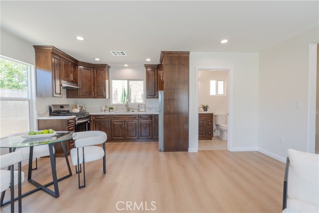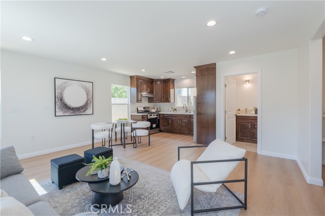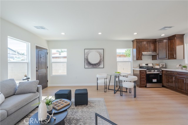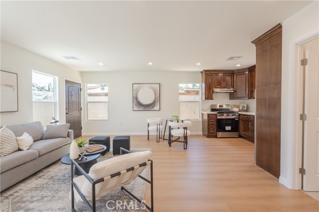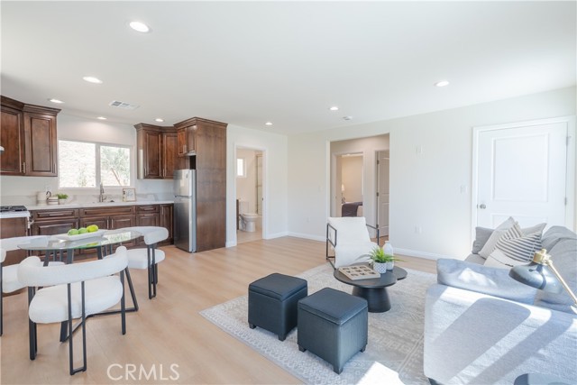 Welcome to 13463 & 13465 Brownell St. Two beautifully designed homes in one lot, ideal for multi-generational living or excellent income potential! The main house welcomes you into a spacious living room featuring a cozy fireplace, creating the perfect space to relax or entertain. A separate dedicated dining room sits conveniently next to the kitchen, offering great flow for gatherings. The kitchen includes an additional flex space that can be used as a home office, pantry, or extra storage area. Washer and dryer hookups are located inside the home for added convenience. The main home features two comfortable bedrooms and one bathroom, with abundant natural sunlight throughout. Enjoy your own private backyard space, perfect for outdoor dining, gardening, or simply relaxing. The detached ADU in the rear is newly built and thoughtfully designed with modern finishes. This brand-new unit features two bedrooms and one bathroom, along with a fully equipped kitchen including stove, oven, refrigerator, and in-unit washer and dryer. The ADU also offers its own private entrance and dedicated backyard, providing excellent separation and privacy from the main home. Recent exterior improvements include a newly added sidewalk, DG landscaping, plants, and other enhancements that add to the property’s curb appeal and functionality. Two homes on one lot, perfectly suited for a large family, rental income opportunity. A rare find with flexible living options, this one will not last!
