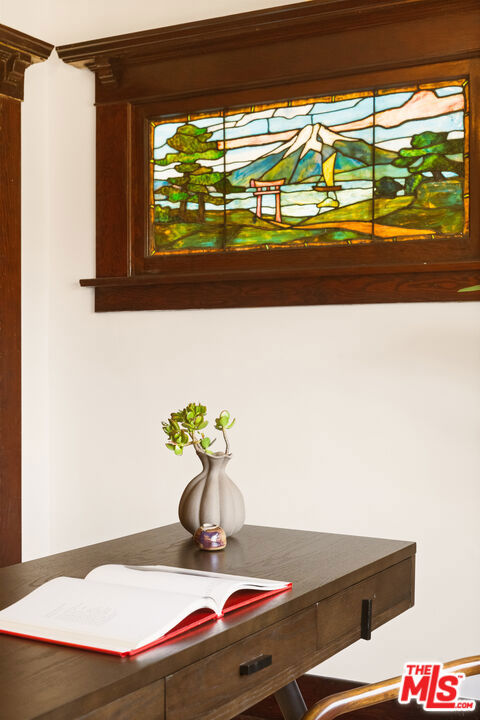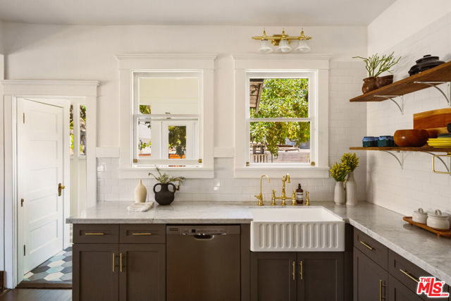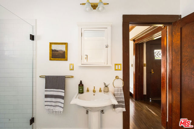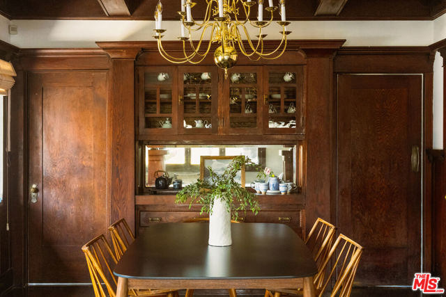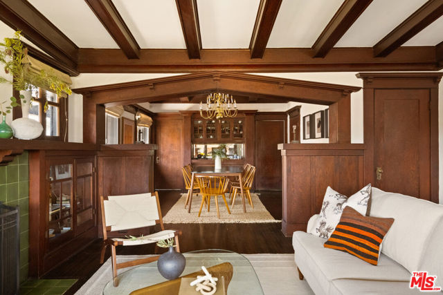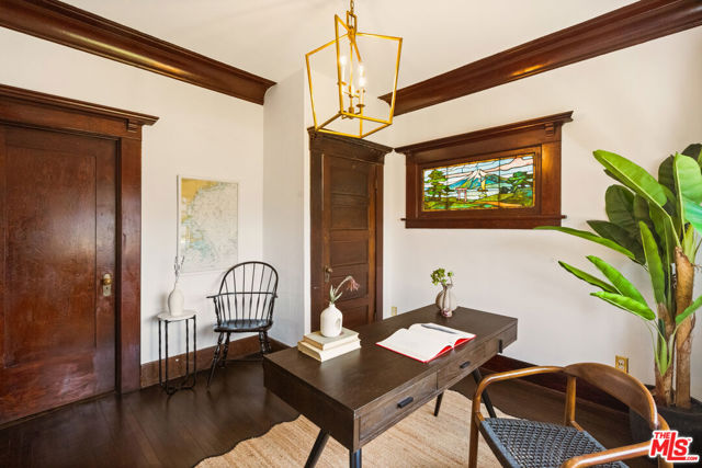 Standing tall on a large corner lot, this stunning 1912 Craftsman is a must see if you love historic homes. The signature ]details, including a wraparound porch, original hardwood floors, a Japanese-influenced stained-glass window and pocket doors have been meticulously restored, while the home's major systems have all been updated and the foundation is bolted. The layout is exquisite with a stunning living room anchored by a fireplace and impressive built-ins in addition to a vaulted, beamed ceiling. Entertain in the dining room surrounded by rich, dark wainscoting with picture rails, box beams and a built-in buffet that will surely become the centerpiece of evening dinners or cocktails. Pop through the butler doors into the large kitchen with high ceilings, marble countertops, a breakfast bar and a sunlit dining nook. The primary bedroom sits at the back of the home with en-suite bath. Two additional bedrooms share a jack-and-jill bath, while the fourth bedroom sits perched on the second floor with windows that offer nearly 360-degree views. Head down to the California basement for extra storage. Step out back to find two large, mature avocado trees. You've got plenty of shade and the key ingredient for a perfect guacamole. Enjoy outdoor dining, lounging or play in the fully fenced backyard, which also has two parking spaces and an EV charger. Centrally located, you'll have easy access to USC and DTLA, as well as the Expo and Crenshaw Lines running to Culver City, Santa Monica, Inglewood and LAX. If its culture you crave, you're minutes from world-class museums, including the Natural History Museum, California Science Center and the upcoming Lucas Museum as well as the Coliseum, Crypto.com Arena, BMO Stadium, SoFi Stadium and the Forum. Shop and eat at USC Village or hit Mercado La Paloma for a bite at Holbox, which has a Michelin star. Nearby, you'll find local favorites like Fuegos, Cafecito de La Crepe, South LA Cafe, Jon & Vinny's and Somerville. Explore area hotspots like Johnny's, Alta, Chulita, Tartine, Farmhouse Kitchen, All-Chill Ice Cream, Cento Raw Bar and Maydan Market. This home has character, charm and culture. Come take a look!