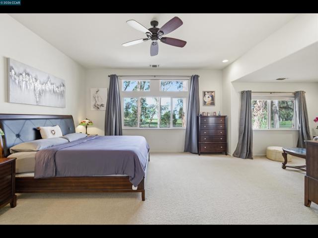 Beautifully designed 5-bedroom, 4-bath home with a dedicated media room, offering 3,446 sq ft of spacious living—perfect for large or multi-generational households—with a backyard that backs to the golf course. The functional layout features multiple living areas, providing flexibility for family gatherings, work, and private retreats. Enjoy abundant natural light throughout and a well-appointed kitchen ideal for everyday living and entertaining. The expansive primary suite captures golf course views with a partial ocean view, and includes a private bathroom and generous dual closet space. Additional bedrooms provide comfort and versatility for growing families. A ground-level media room offers exceptional flexibility, creating the perfect space for movie nights or may be converted into additional bedrooms (6th and 7th), subject to buyer verification, making it ideal for extended or multi-generational living. Set on a large lot with room to relax and play, this home also includes a 2-car garage and is conveniently located near parks, shopping, and major commuter routes. HOA covers front yard maintenance and sprinkler system. Media room A/V, projector, speakers, receiver, screen, and seating included. Option to purchase furniture.