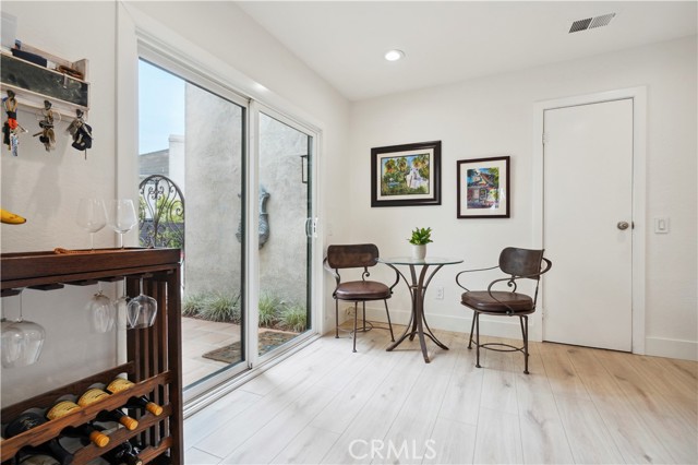 Beautifully remodeled coastal retreat in the prestigious, gated Las Fuentes community of Huntington Harbour. This 3-bedroom, 2.5-bath home features soaring 10-foot ceilings, new dual-pane windows (2022), upgraded electrical panel, and premium waterproof laminate/vinyl flooring throughout. The updated kitchen offers quartz countertops, stainless steel appliances, a built-in microwave, full-size refrigerator, dishwasher, and wine fridge, plus a cozy breakfast nook and direct access to the attached two-car garage. The open layout flows into a dining area with fireplace and sliding doors leading to a private patio with lush landscaping, lemon and lime trees, and a gas BBQ—perfect for outdoor living. Upstairs, the spacious primary suite includes vaulted ceilings, a private balcony, sitting area, a walk-in closet, dual vanities, and an upgraded walk-in shower. Two additional bedrooms share a balcony and a fully remodeled bath April 2026, with convenient upstairs laundry. Additional features include a remodeled powder room, ample storage, a water purifier, Levelor blinds, new front entry hardscape, and recent termite and stucco work. Enjoy added privacy with no rear neighbor. Community amenities include a pool, sauna, and beautifully maintained grounds. Ideally located near Huntington Harbour Mall, local dining, shops, and just minutes from the water for kayaking, paddleboarding, and beach days, with easy access to top schools, parks, freeways, and Long Beach Airport.