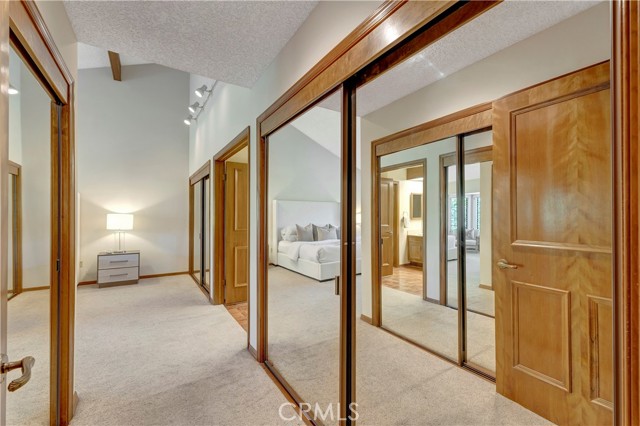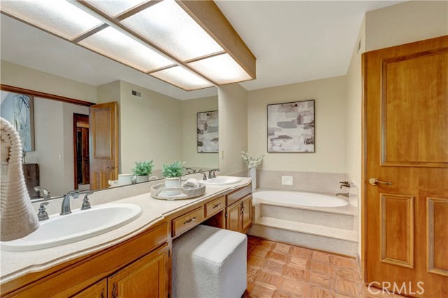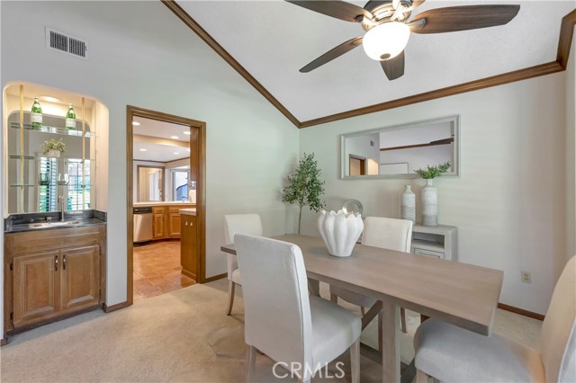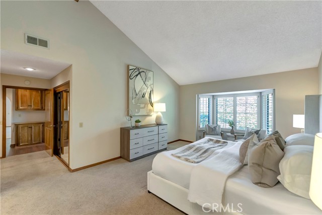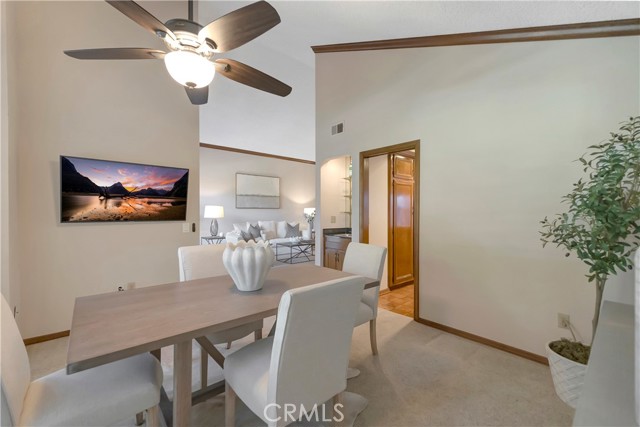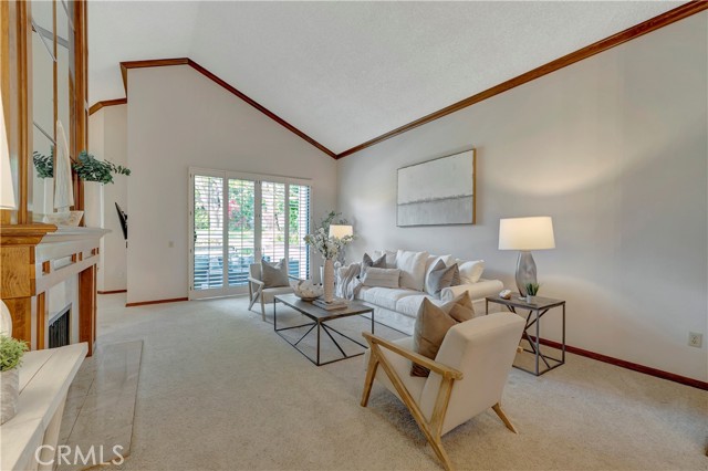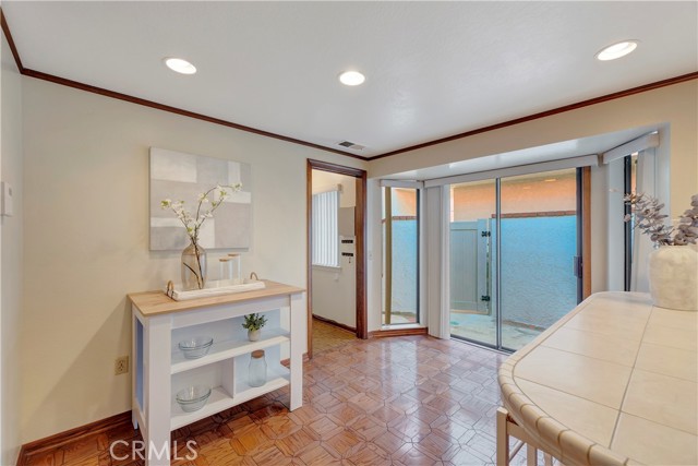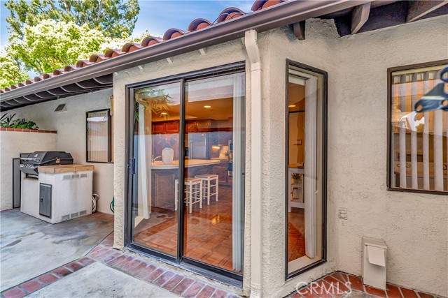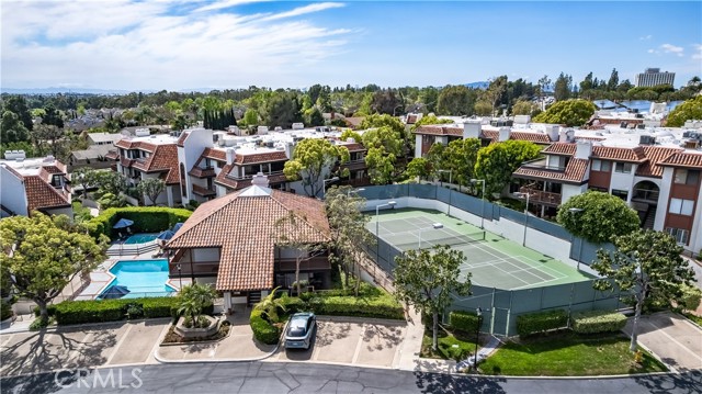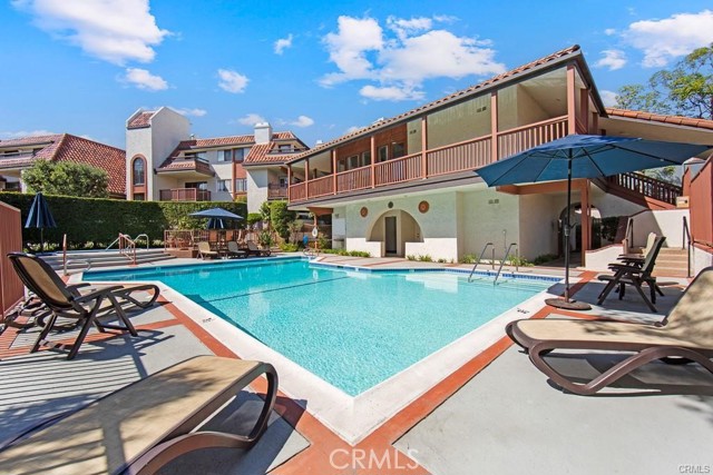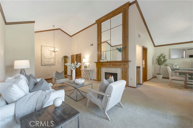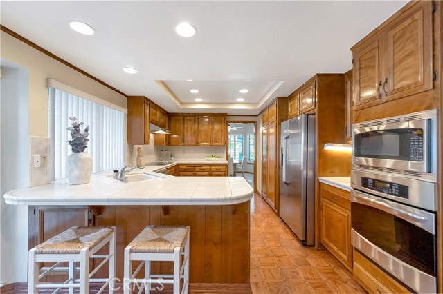 Tucked within a resort-style community called "BIXBY RIVIERA", this beautifully situated SINGLE STORY-END UNIT townhome offers a peaceful PARK-LIKE setting in a PREMIERE LOCATION along the back GREENBELT. Covered side walk-way to double door entry, soaring vaulted ceilings in LR, DR & both BR's. Access to spacious front patio with treetop views from the LR & gas fireplace with dramatic mirrored & wood frame plus mantel. Wet bar with mirror & glass shelves. Kitchen with GE stainless steel appliances, Bosch dishwasher, tile counters, eating area & breakfast bar. Separate inside laundry room with direct access to 2 car attached garage with storage. Spacious en suite primary BR with 3 mirrored closets, bay window & track lighting. BA with soaking tub, separate shower & double vanities. Secondary BR with bult-in shelves & track lighting. Plantation shutters, recessed lighting, central heat & air, carpet, wood and parquet flooring. This is a GREAT OPPORTUNITY as there are only 35 townhomes in the complex! Community amenities include: 24 hour guard at entry gate, large tiered fountain, pool, spa, sauna, large clubhouse, gym, pickleball/tennis court, trash sewer, water, max of 2 small pets, 25 pounds each or less.