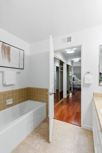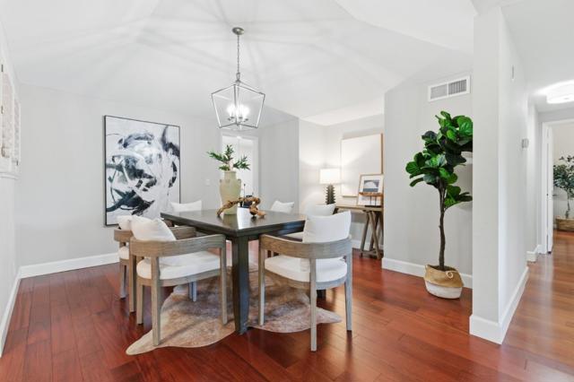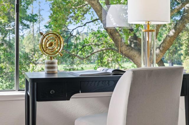 Ground-floor living in a gated community, complete w/ 2 dedicated parking spaces including an EV charger & a spacious private storage room, this beautifully updated home is further enhanced by top-rated Las Lomitas schools & a prime Sharon Heights location overlooking the golf course. Tucked away w/ direct access and enhanced privacy, the residence opens to a bright, refined interior with fresh paint and rich hardwood flooring throughout. The remodeled kitchen features marble countertops, modern appliances, and a built-in oven, seamlessly connecting to a dedicated dining area designed for both daily living and effortless entertaining. The grand living room is anchored by a cozy fireplace and extends to a large private patio, creating a seamless indoor-outdoor flow with peaceful golf course and greenery views. Two spacious bedrooms offer comfortable retreats, including a primary suite w/ direct patio access. Two full bathrooms are thoughtfully designed for both function & style. Additional highlights include central air conditioning, in-unit laundry, & well-appointed community amenities such as a heated pool & clubhouse. All just moments from Sharon Park, Sharon Heights Shopping Center, Stanford Shopping Center, and Stanford Medical Center, w/ easy access to major commute routes.