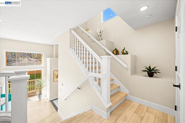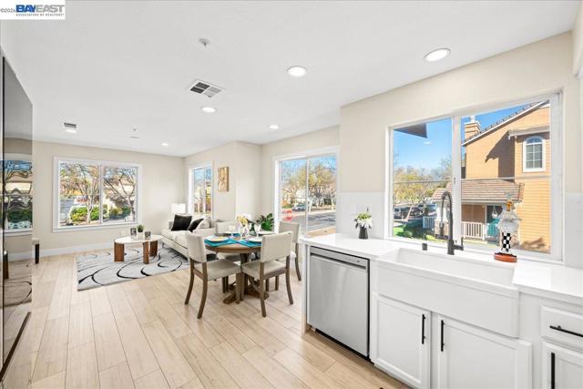 Stunningly RENOVATED (No occupancy thereafter) townhome in an established neighborhood that offers easy accessibility & comfort. Move in ready. Special financing at 4.875%, ask for details. Corner/end unit, open on 3 sides, you'll enjoy a serene living experience. Entering, you'll be greeted by a decorative foyer with beautiful tiles. The high ceiling creates openness that is complemented with plenty of natural lights. The designer flooring throughout the property creates uniformity. The kitchen, nook, family room, and formal dining areas are thoughtfully separated, providing ample space for relaxation & entertainment. The kitchen is a highlight, featuring a farmhouse sink, upgraded faucet, quartz countertops & backsplashes, & sleek new LG brand stainless-steel appliances. Recessed lighting in the property can be adjusted to a soft, warm halo glow, creating a cozy ambiance. A stunning electric fireplace with multiple color settings adds a touch of sophistication to the living room. The primary bedroom is a serene retreat, nestled in a private location w walk-in closet. This tranquil oasis opens to the inviting pool view & trees, perfect for privacy & relaxation. The piece of resistance is the stunning shower area, complete with a cozy niche & comfortable bench & barn door.