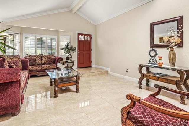 This beautifully maintained single-level home offers comfort, privacy, and timeless upgrades throughout—with no HOA and no Mello-Roos. Featuring a new roof (2023) and an attached 2-car garage, the home is ideally positioned with no neighbors directly behind—providing added tranquility. Inside, vaulted ceilings, crown molding, and plantation shutters create an elegant yet inviting atmosphere, while durable flooring flows seamlessly through the main living areas. The formal living room welcomes you in, leading to a beautifully appointed kitchen complete with granite countertops, stainless steel appliances, and ample cabinetry. The adjacent family room with a cozy fireplace is perfect for relaxing or entertaining. The spacious primary suite is a true retreat, featuring vaulted ceilings, a private patio, generous closet space, and an en-suite bath. Step outside to a low-maintenance backyard with direct access to the greenspace behind—ideal for enjoying outdoor living with added privacy. The backyard also features a built-in BBQ island with an outdoor-rated refrigerator and a charming fountain, creating a peaceful setting perfect for entertaining and relaxation. Conveniently located near shopping, dining, schools, parks, and with easy access to the I-15, this home offers the perfect blend of comfort and convenience.