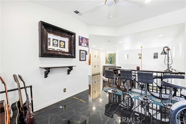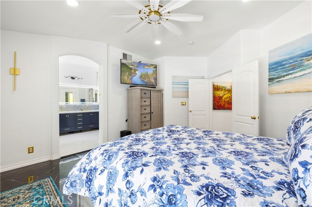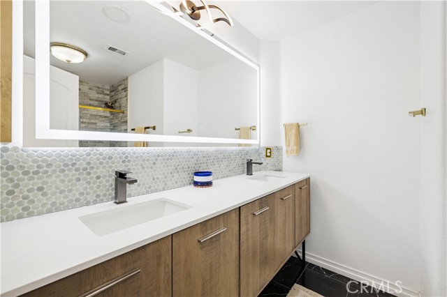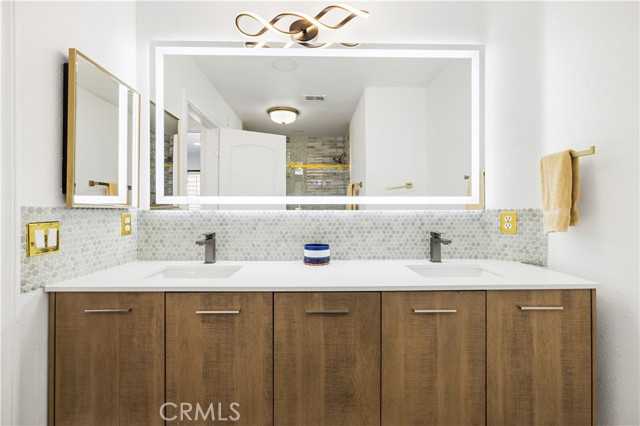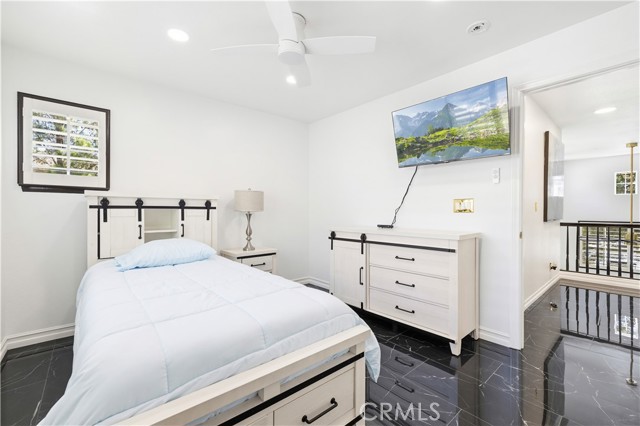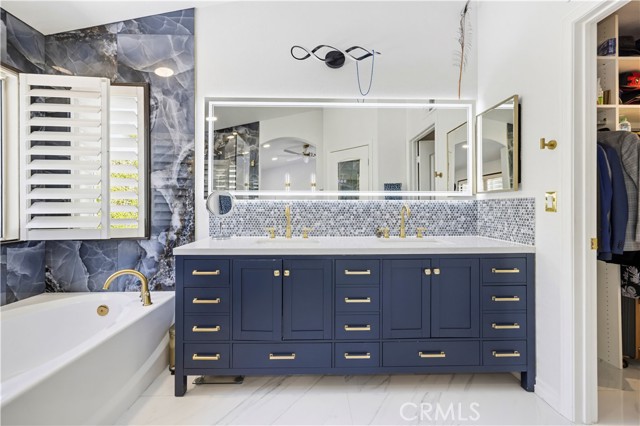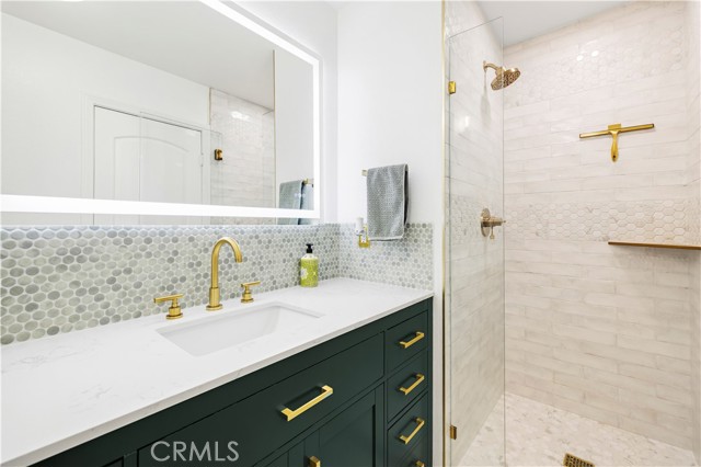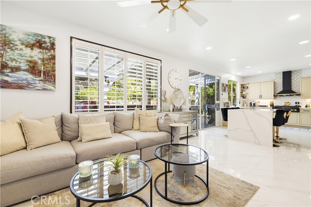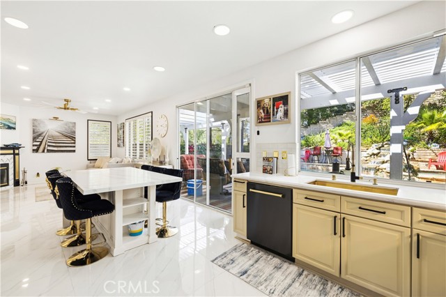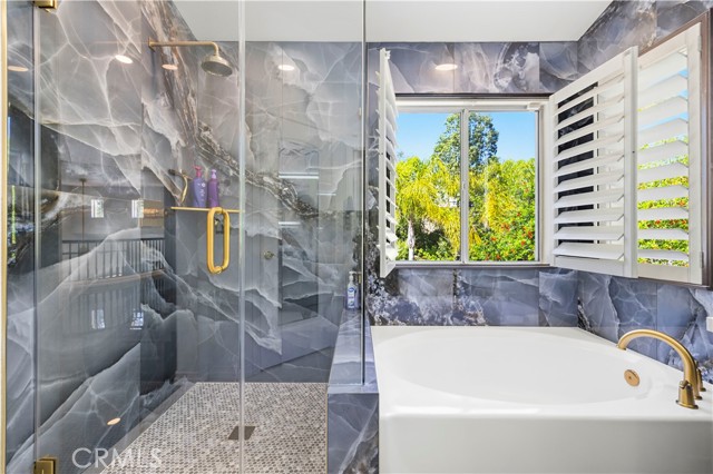 Experience refined living in one of Northpark’s most prestigious enclaves in a forest-like setting. This impeccably remodeled residence is ideally located just a short stroll from the award-winning North Park Elementary School and moments from the scenic beauty of Chesebrough Park. From the moment you enter, you are welcomed by soaring ceilings and an abundance of natural light that highlights the home’s sophisticated design. The main level is adorned with exquisite marble-inspired porcelain flooring, setting a tone of understated luxury throughout. At the heart of the home lies a beautifully appointed kitchen, thoughtfully designed with premium, designer-inspired ZLINE appliances, elegant cabinetry, and an expansive quartz island—perfect for both everyday living and upscale entertaining. The open-concept layout flows seamlessly into the spacious family room, all with effortless access to a spectacular backyard retreat. A desirable downstairs bedroom, paired with a fully upgraded bathroom featuring refined finishes, offers comfort and flexibility for guests or multigenerational living. A striking staircase with rich wood accents leads to the second floor, where wide-plank marble-inspired flooring continues the home’s cohesive, high-end aesthetic. A generous open loft overlooks the main living space, offering endless possibilities as a media room, executive office, fitness studio, or play area. The primary suite is a true sanctuary—expansive and serene, with dual sliding doors that open to a private, oversized deck overlooking the resort-style backyard, framed by lush greenery and swaying palms. The spa-inspired ensuite bath features a grand walk-in shower with custom tilework and thick glass enclosure, a dual-sink vanity with designer fixtures, and a dramatic backlit mirror and a stunning L-shaped walk-in closet. Addtionally, this home offers two well-appointed bedrooms and a fully remodeled bathroom featuring a dual-sink vanity and elegant backlit mirror. The backyard is surrounded by a lush hillside and mature trees, this private oasis offers the perfect blend of shade and sunshine. A sparkling pool with cascading waterfall serves as the focal point, complemented by an elevated spa and inviting firepit—ideal for evenings under the stars. Thoughtfully curated details such as a covered patio, ambient string lighting, artificial turf, and additional side yard space create a truly elevated outdoor living experience.