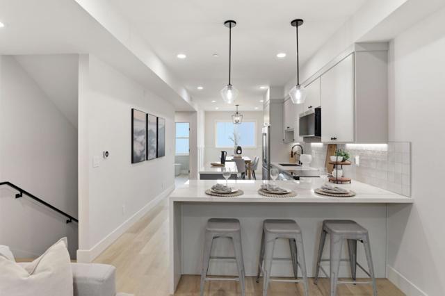 Gorgeous new construction in Campbell, near the Pruneyard and downtown with easy access to shopping, dining, and amenities. Highly regarded Cambrian schools. Bright interior with large windows, southern exposure, and three balconies. Main level features open living area. Kitchen includes polished porcelain countertops, peninsula and island, and custom cabinetry with ample storage. Brand-new Samsung and LG appliances: French door refrigerator, induction cooktop, oven, microwave, and dishwasher. Opens to living and dining areas for functional flow. Modern finishes throughout. Two bedrooms on the third level, each with its own bathroom featuring tiled finishes and quartz countertops. Washer/dryer on this level. Attached tandem 2-car garage with Level 2 EV hookup, storage, and epoxy flooring. Modern and energy-efficient features include Ring doorbell, mini-split HVAC, dual pane windows and solar options. Near parks, trails, restaurants, shopping, and local events, with access to major Silicon Valley employers and San Jose International Airport. Some photos are from model unit with similar floor plan; finishes may vary.
