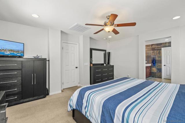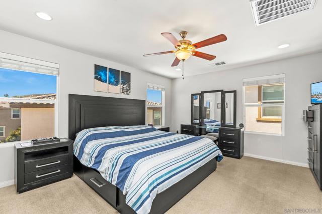 Located among the hills overlooking Lakeside in the highly sought-after Ridgeline community, and priced to sell, this beautifully designed fully detached condo with yard offers the ideal space to grow, gather, and truly feel at home. With 2,076 SF, this two-story home features 4 bedrooms, 3 full bathrooms and a loft, including a convenient downstairs bedroom and bath perfect for guests, extended family, or a quiet home office. Designed for everyday living and connection, the open floor plan is filled with natural light, where high ceilings and abundant windows create a warm, welcoming atmosphere from the moment you walk in. The spacious kitchen is the heart of the home featuring stainless steel appliances including a 6-burner dual oven range, a walk-in pantry, and a breakfast bar. All perfect for morning routines, casual meals, and conversations that carry into the evening. Upstairs a generous loft offers the flexibility to be used for a playroom, movie space, home gym, homework zone, or additional family room. A separate upstairs laundry room is conveniently located, adding to the thoughtful design. The primary suite provides a peaceful retreat, complete with an oversized bathroom, soaking tub, separate shower, and a large walk-in closet with stunning custom built-ins. Outside the low-maintenance yard offers just the right amount of space to relax, play, or unwind without the upkeep. Complete with solar and located in a newer, highly sought-after community, this home blends comfort, efficiency, lifestyle, and is ready to be the backdrop for your new memories!