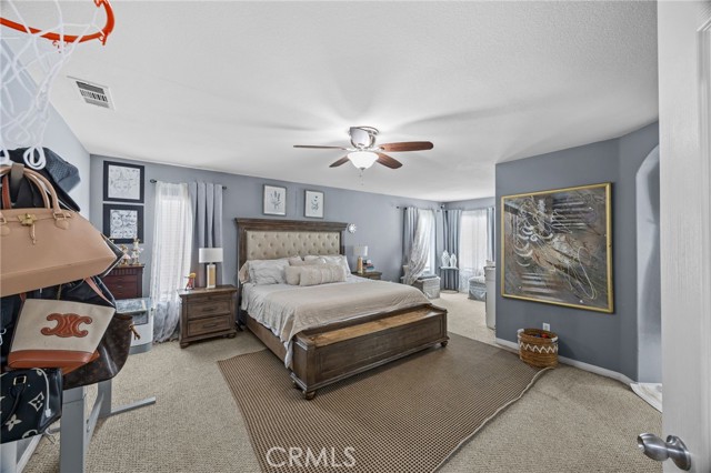Spacious Victorville Home with Flexible Living This 5 bedroom, 3 bathroom home offers approximately 2,900 sq ft of living space on a 10,200 sq ft lot. The open floor plan includes a convenient downstairs bedroom and full bath—ideal for guests or multi-generational living. Upstairs features additional bedrooms plus a versatile loft conversion, perfect as a large bedroom, bonus room, or office. The primary suite includes a private retreat currently been used as a bedroom. Enjoy new wood flooring, two newer AC units, and leased solar for improved energy efficiency. The property also offers RV parking and is conveniently located near shopping, dining, and everyday amenities, including 15 minutes to the freeway for easy commute. A must-see with plenty of space and potential!