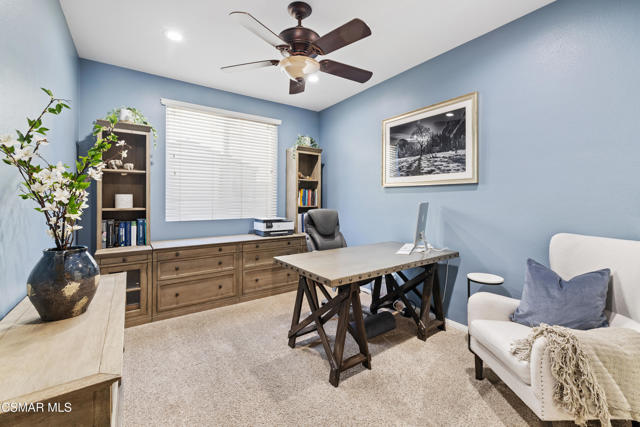 Welcome to this pristine, highly upgraded 5-bedroom, 4-bathroom home ideally located in the heart of Camarillo. Designed for both comfort and functionality, this expansive residence offers a flexible floor plan with four bedrooms plus a bonus room converted into a second primary suite, complete with its own ensuite bathroom and walk-in closet.As you enter through the double front doors, you're greeted by a light and bright living room featuring soaring ceilings and elegant window shutters, creating an inviting first impression. The living room flows seamlessly into the family room, which opens to the kitchen--perfect for everyday living and entertaining.The chef's kitchen is a true showstopper, featuring a large granite center island, quartz countertops, stainless steel appliances, double ovens, a coffee bar, butler's pantry, and a spacious walk-in storage pantry. The laundry room is conveniently located just off the kitchen, adding ease to daily routines. Through the butler's pantry, you'll find a formal dining room ideal for hosting gatherings and special occasions.The main level also includes a bedroom or office with a full bathroom, offering flexibility for guests or multigenerational living. The garage provides ample built-in storage.Upstairs, a beautiful custom wood bookshelf with additional storage welcomes you at the landing. The primary suite features a generous walk-in closet and a spa-like bathroom with dual sinks, a separate soaking tub, and a walk-in shower. You'll also find three additional upstairs bedrooms, including the converted bonus room now serving as a second primary suite with a private ensuite and walk-in closet. Another bedroom is perfect for guests, while an additional room showcases custom built-in bunk beds with exceptional craftsmanship. The upstairs hallway bathroom has been remodeled and includes a fun hidden storage space tucked behind the door.Step outside to a tropical backyard retreat, complete with a pool and spa--perfect for entertaining or relaxing with family and friends.Termite work has been completed and all repairs have been taken care of--this home is truly move-in ready and ready to go! Additional features include a whole-house generator plug and thoughtful upgrades throughout.This home is truly immaculate from top to bottom and offers the ideal blend of luxury, space, and functionality.