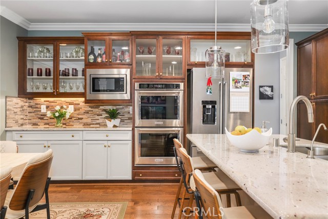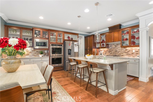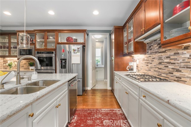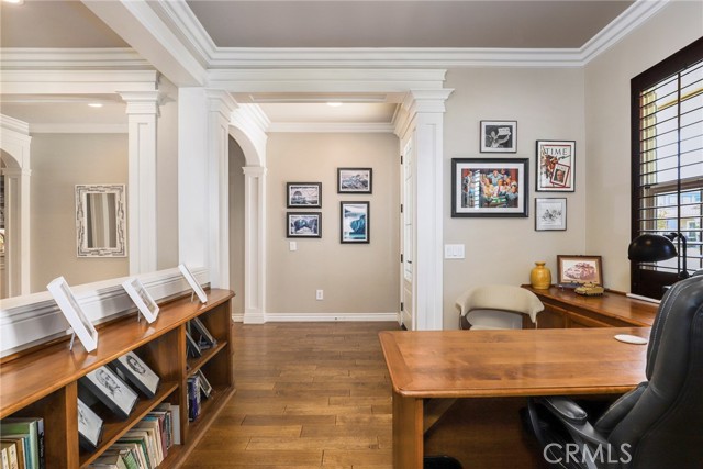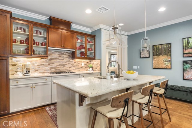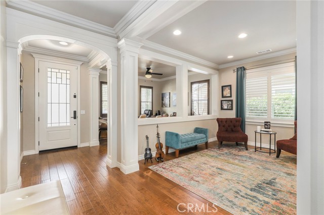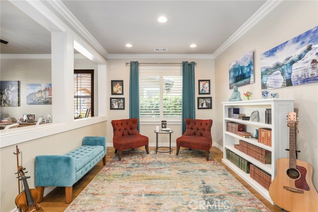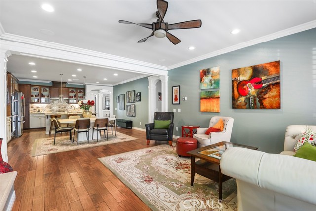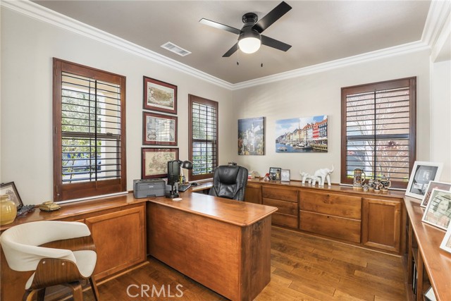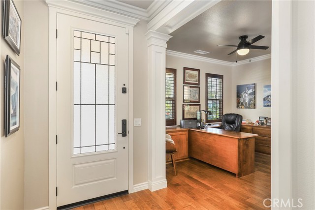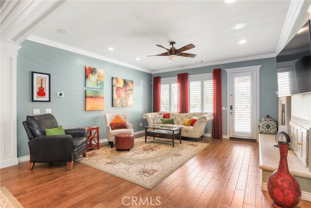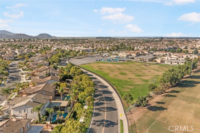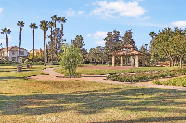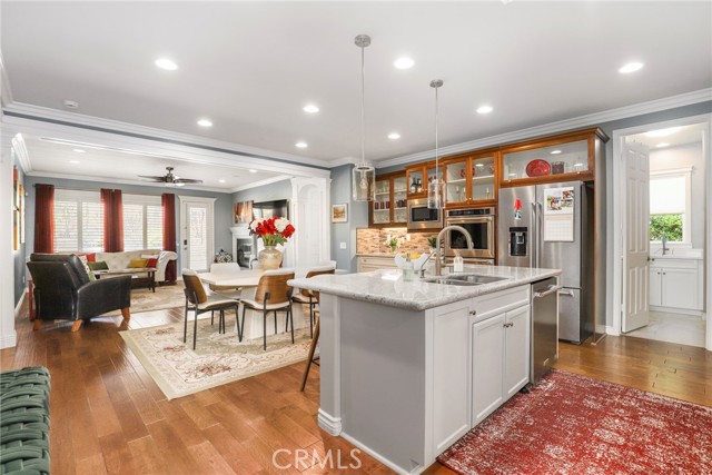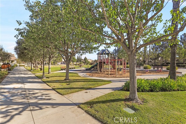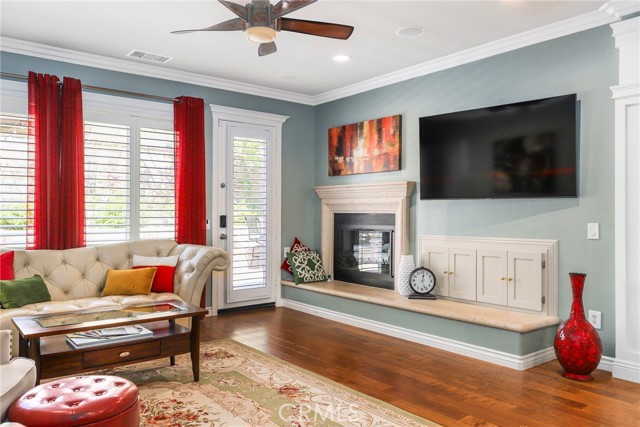 This beautifully updated single-story home in the highly desirable Village at the Park community features 3 bedrooms and 2 bathrooms, offering comfort and style in a move-in ready package. The open floor plan is filled with natural light and showcases rich wood flooring, elegant granite countertops, and newer appliances throughout. The bright and airy kitchen provides abundant cabinet and counter space, along with a large island perfect for cooking, entertaining, or casual dining. The adjoining family room invites you to unwind by the cozy fireplace, whether you're watching TV or enjoying a good book. Need a workspace? The front office includes built-in cabinetry and a desk, making it ideal for a work space. The dining area offers versatile space that can be customized to fit your lifestyle. The private primary suite is a peaceful retreat, featuring backyard views, a soaking tub, and three closets, including a spacious walk-in. Two additional bedrooms and a shared bathroom are thoughtfully located on the opposite side of the home. Venture outside to a low-maintenance backyard complete with a built-in BBQ, bar, and fire pit—perfect for relaxing or entertaining. Residents of Village at the Park enjoy access to resort-style amenities, including two pools, parks, a fitness center, clubhouse, RV parking, shops, services, and a top-rated elementary school. It’s truly a wonderful place to call home.