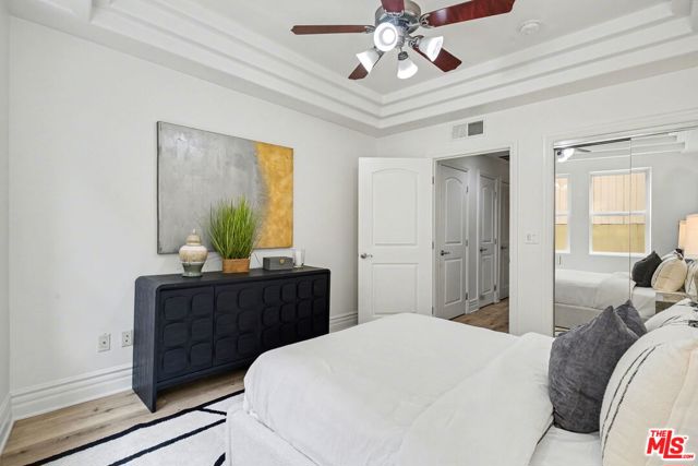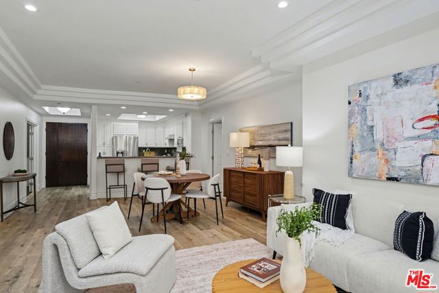 Set within a well-kept boutique building moments from Ventura Boulevard, Residence #102 at 12021 Guerin Street offers an effortless blend of style, refined comfort, and prime Studio City living. Thoughtfully designed with generous proportions and timeless finishes, this sophisticated home captures the relaxed polish that defines the neighborhood. Inside, elegant tray ceilings, recessed lighting, and wide-plank flooring create a warm, polished atmosphere throughout the main living spaces. The open-concept living and dining area is anchored by a fireplace and extends seamlessly to a private outdoor patio, an inviting setting for morning coffee, evening unwinding, or casual entertaining. The kitchen is well-appointed with custom cabinetry, granite countertops, stainless steel appliances, bar seating, and range oven.The primary suite offers a private retreat with a walk-in closet and spa-inspired bath complete with dual vanities, stone surfaces, a soaking tub, and separate glass-enclosed shower. Additional bedrooms offer flexibility for guests, a home office, or creative space. Residents enjoy controlled access, secure parking, a fitness room and rooftop deck all just moments from the best of Studio City. This coveted address places cafes, acclaimed dining, boutiques, and everyday conveniences right outside your door. Refined yet approachable, sophisticated yet comfortable, Residence #102 is California living done right, the kind of home that makes everyday living feel elevated