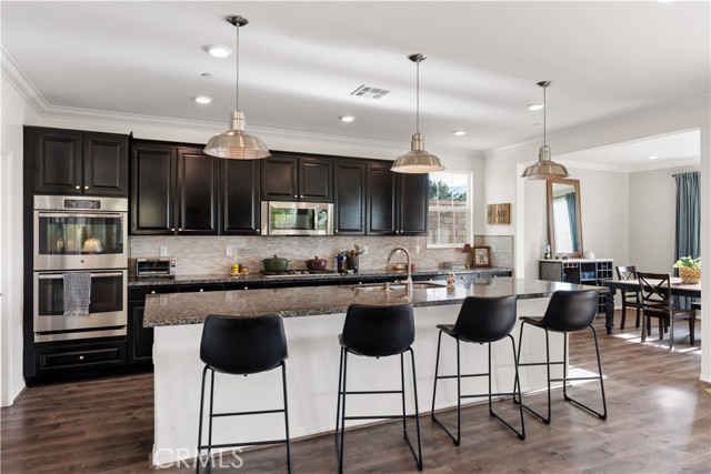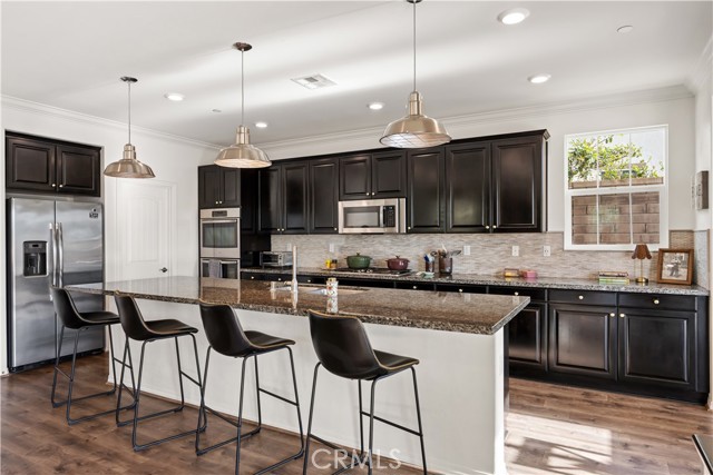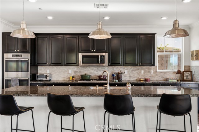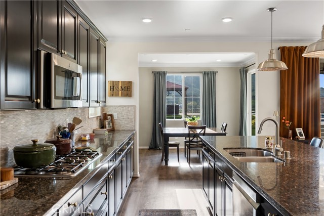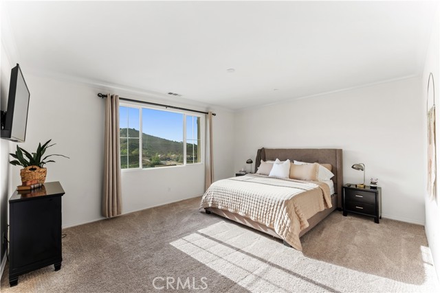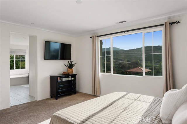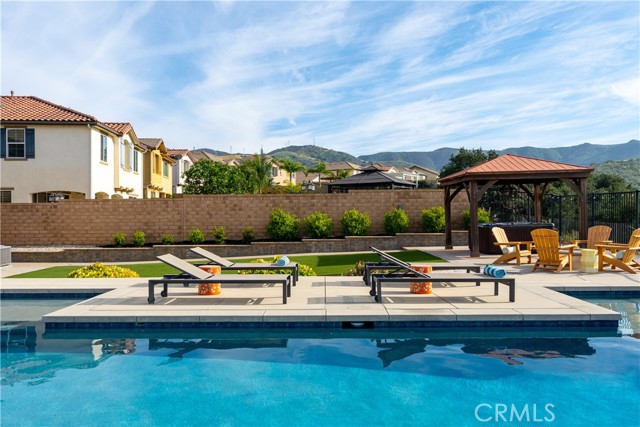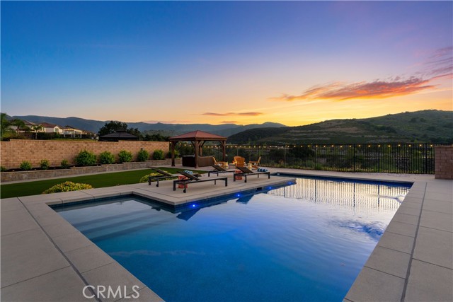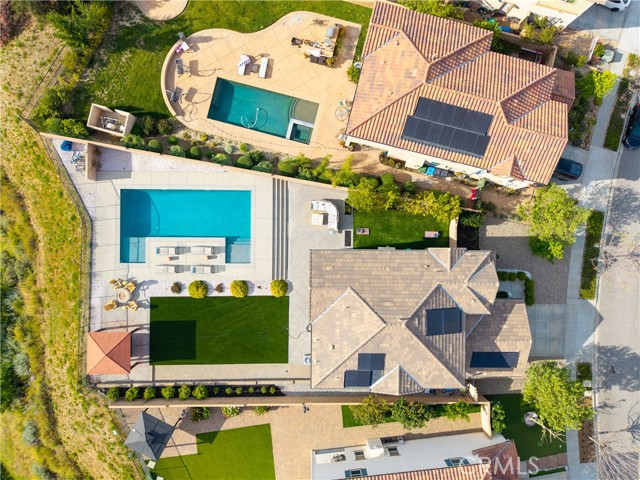 Welcome to this exceptional home located in the highly sought-after Woodlands community of Simi Valley, set on a premium view lot just under 10,000 square feet with sweeping valley and mountain views. This beautifully upgraded residence offers the perfect blend of space, comfort, and modern living. Spanning over 2,500 square feet, the Arbor Heights Plan 2 features 4 bedrooms and 2.5 bathrooms, thoughtfully designed with all bedrooms upstairs for privacy and functionality. The expansive primary suite captures stunning views and includes a spa-like bath with dual closets, built-in vanity, and elegant finishes. Additional bedrooms are generously sized, ideal for family, guests, or flexible living. The main level is designed for both everyday living and entertaining, featuring an open-concept layout with a spacious family room, formal living and dining areas, and a beautifully appointed kitchen with granite countertops, a large center island, stainless steel appliances, custom backsplash, and abundant cabinetry. Designer touches throughout include recessed lighting, plantation shutters, custom wainscoting, upgraded flooring, and curated light fixtures.This smart home is equipped with modern conveniences including remote-access locks, independent thermostats, solar power, and a tankless water heater, offering both efficiency and ease of living. The backyard is a true showpiece, newly enhanced with a state-of-the-art pool, creating a resort-style setting perfect for both relaxation and entertaining. Enjoy a covered patio, gazebo with gas fire pit, and multiple areas to gather while taking in the surrounding views. Additional features include an attached 2-car garage with epoxy flooring and extra storage, along with a prime location close to parks, hiking trails, shopping, dining, and easy freeway access. A rare opportunity to own a beautifully upgraded home with views, privacy, and a newly added luxury pool in one of Simi Valley’s most desirable communities.