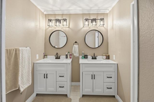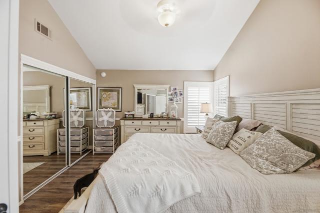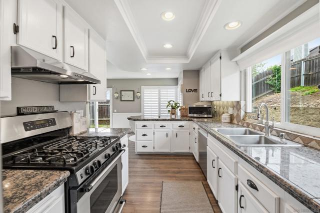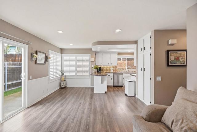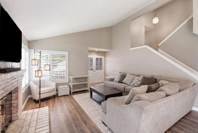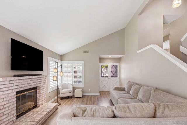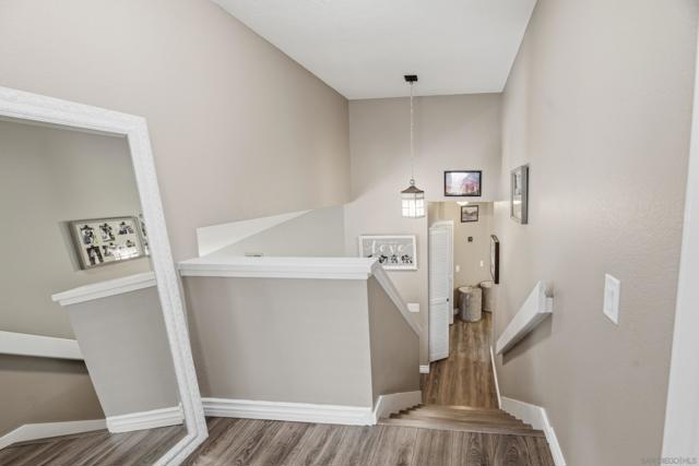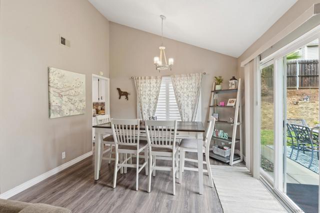 Welcome to the charming home is quiet cul de sac location in Northwestern Escondido. The pride of ownership spills out of this home. As you drive up and see the lovely front porch with southern exposure, picture yourself sitting there relaxing with a great book. As you enter the living room, imagine a lovely fire in the fireplace on a chilly winter day. And moving on to the formal dining room, there is a door to the large back yard. Plenty of room for a pool if you want to put one in. Or if you prefer play equipment or trampoline. This is just one access to the backyard. Back in the house the kitchen has ample counter space and plenty of storage. Adjacent to the kitchen is the family room and a little nook area that could be the breakfast area or an extension of the family room. From here you can access the powder room and the stairs. Going down you enter the two car garage. Going up you will be on the first level of bedrooms with two secondary bedrooms and the guest bath and the laundry closet. Ascending another set of stairs you arrive in the Primary Bedroom with two closets and the Primary Bathroom with Dual Vanities and Walk in Shower. The home has a newer roof, new laminate flooring, plantation shutters or wide wood blinds, newer water heater. You will instantly note that the home is meticulously cared for and upgraded. If there is a very warm day, you can turn on the air conditioner and with chilly days the furnace or fireplace. This home is a welcoming landing spot after a day at work or play.