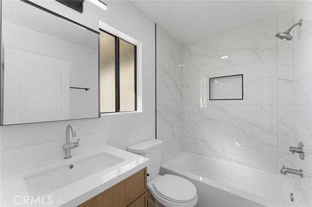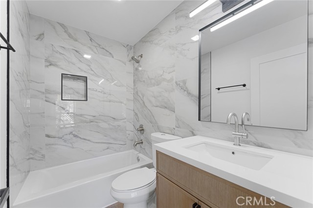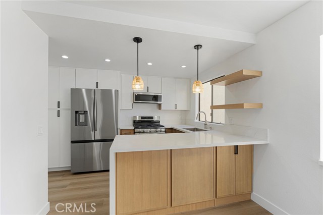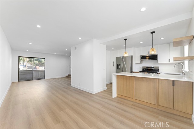 Discover this beautifully updated residence tucked away in the foothills of the San Gabriel Mountains, located in the charming community of Tujunga. Blending modern upgrades with warm, inviting design, this home offers a perfect balance of comfort and style. Step inside to find fresh, contemporary flooring that creates a sleek and cohesive feel throughout. The stunning kitchen is a true centerpiece, featuring stainless steel appliances, elegant quartz countertops, and stylish slim shaker cabinetry in a warm oak finish. A striking peninsula with a quartz waterfall edge adds a sophisticated touch—perfect for both everyday living and entertaining. The inviting living room, highlighted by a charming slatted fireplace, opens to a private balcony where you can relax and take in the surrounding views. The spacious primary bedroom also enjoys its own private balcony, offering a peaceful retreat to unwind. Recessed lighting throughout the living room, dining area, and bedrooms enhances the home’s bright yet cozy ambiance. With two generously sized bedrooms and 2.5 beautifully updated bathrooms, this residence provides both comfort and functionality. The bathrooms showcase modern finishes, complete with sleek black and stainless steel fixtures. Additional features include a convenient indoor laundry area and a tandem two-car garage with extra storage space. With its thoughtfully designed upgrades and inviting character, this home is truly move-in ready and waiting for you to make it your own. Don’t miss the opportunity to own this exceptional property in a serene and sought-after location.