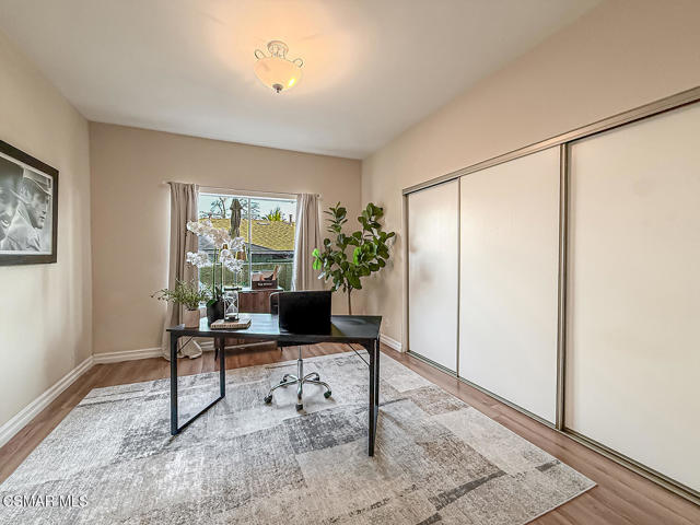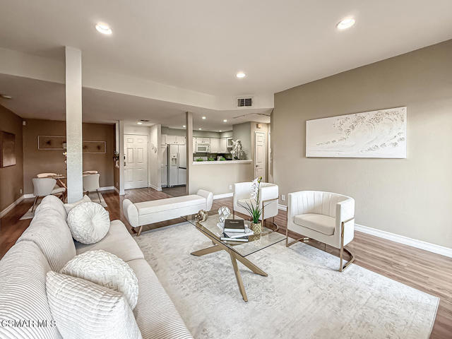 Welcome to this beautifully updated, one-of-a-kind ground-floor condominium in the highly sought-after gated community of Chandler Park Village--offering the perfect blend of comfort, accessibility, and elevated everyday living. With easy, stair-free access, this residence delivers a rare level of convenience that's increasingly hard to find.Set within a resort-style community, residents enjoy multiple pools and spas, a fully equipped fitness center, BBQ areas, and lush, park-like grounds--all in one of Sherman Oaks' most desirable locations.Ideally situated within the complex, the unit offers exceptional privacy with a tranquil private balcony that does not face the street--creating a quiet, retreat-like atmosphere perfect for relaxing or entertaining. Inside, wide plank engineered hardwood floors and an open, airy floor plan are complemented by abundant natural light. The spacious living room features a fireplace, recessed lighting, and custom drapery, delivering both comfort and style.The thoughtfully reconfigured kitchen opens seamlessly to the living and dining areas and is equipped with a reverse osmosis filtered water system and a built-in wine and beverage refrigerator--ideal for modern living and effortless entertaining. A dedicated dining space adds both functionality and sophistication.The primary suite is generously sized with a walk-in closet, offering a comfortable and private retreat. Additional highlights include in-unit laundry, well-proportioned living spaces, and two assigned parking spaces in a secure gated garage.HOA dues include hot and cold water, trash, and access to all community amenities, enhancing both value and convenience.Located just moments from Trader Joe's, Starbucks, Westfield Fashion Square, and some of Sherman Oaks' most popular dining and nightlife destinations, this home offers the best of both accessibility and lifestyle.If you're searching for a standout condominium in this price range, this is the one that delivers on every level.