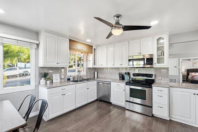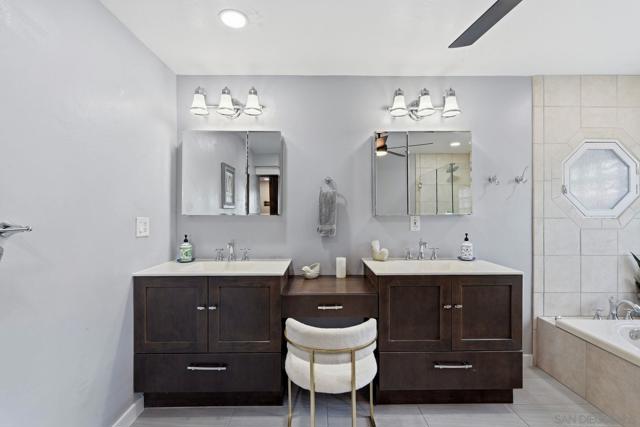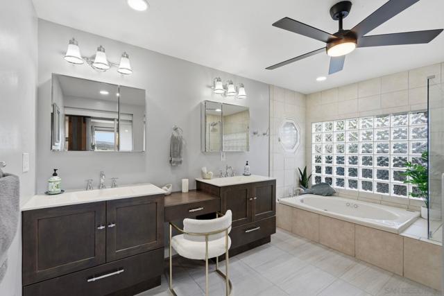 Turnkey Airbnb/Short-Term Rental (STR) Investment Opportunity in the heart of Escondido’s Historic District! This beautifully updated two-story residence offers 1,954 sq ft of light-filled living space with breathtaking city and mountain views. Currently generating $80K+ in gross annual revenue. Sold fully furnished with the right offer. The main level features luxury vinyl plank flooring throughout, an open-concept kitchen with sleek countertops, stainless steel appliances, modern cabinetry, recessed LED lighting, and ceiling fans. The spacious living room boasts a cozy wood-burning fireplace and large sliding glass doors that open to an enormous balcony overlooking the views. The adjacent dining room also accesses the expansive balcony. The private primary suite includes a large walk-in closet, ceiling fan, and luxurious ensuite bathroom with a Jacuzzi soaking tub, double vanity, brand-new frameless glass shower enclosure, and new porcelain tile floors. Downstairs offers excellent flexibility with a separate living area, kitchenette, den, and two additional bedrooms — perfect for guests, extended family, or additional rental income. Step outside to the beautifully remodeled covered patio, separate pool area with seating, outdoor fireplace, fire pit, pool house, and mature orange, avocado, and pomegranate trees. The large, fully fenced, and completely flat backyard provides ample room for future ADU expansion. Additional features include a tankless water heater, new HVAC system, and a full Vivint home automation and alarm system with smart thermostat.