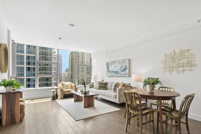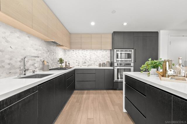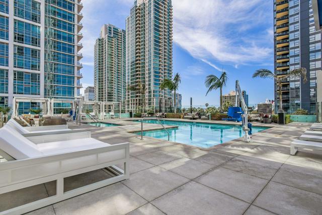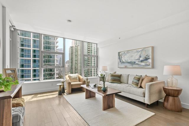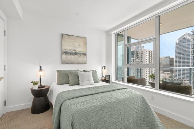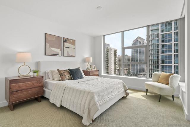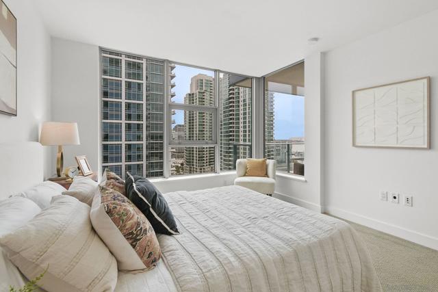 Luxury, location and convenience are waiting for you at this special south-facing residence at Savina, a resort-style high-rise community in downtown San Diego. Located on the 17th floor with city, bay and ocean views, you’ll find yourself where Little Italy meets the San Diego Bay, with incredible access to dining, entertainment and transportation options. Sophisticated design elements throughout the condo have been tastefully selected, from the sleek and modern kitchen appliances to the spacious and tasteful bathrooms. The primary suite offers a walk-in closet and wonderful views, and serves as a great perch to overlook the Savina pool and amenities below. The open concept living space and south facing perspective allow for light filled days, followed by beautiful San Diego sunsets from your private balcony. You’ll be spending lots of time on the 4th floor where you’ll find the hotel-inspired pool and spa and plenty of outdoor lounging space. There’s also a steam room, sauna & fitness center, yoga terrace, a social lounge with a full kitchen and billiards, and business center. Built in 2019 by Bosa Development, the building also offers community EV charging stations and 24-hour building staff. And don’t miss this special resident bonus - a room with bike tune-up and pet washing stations! Unit 1707 includes one secure parking space on P1 and a storage unit.