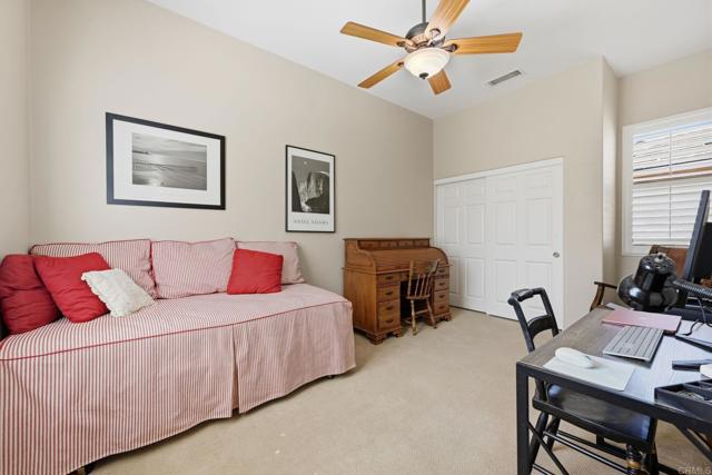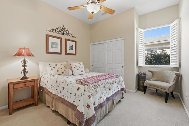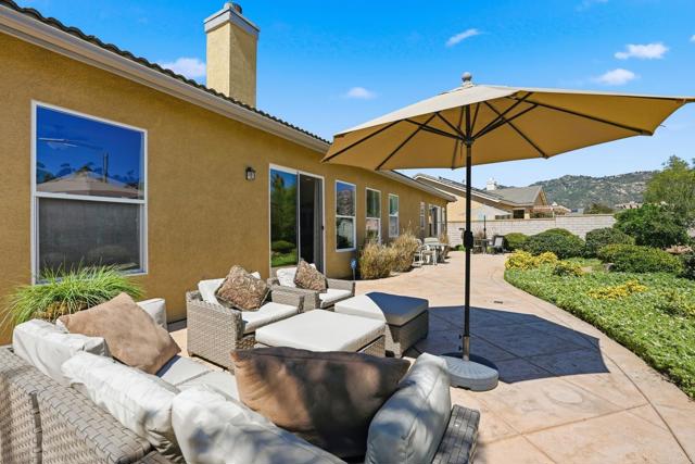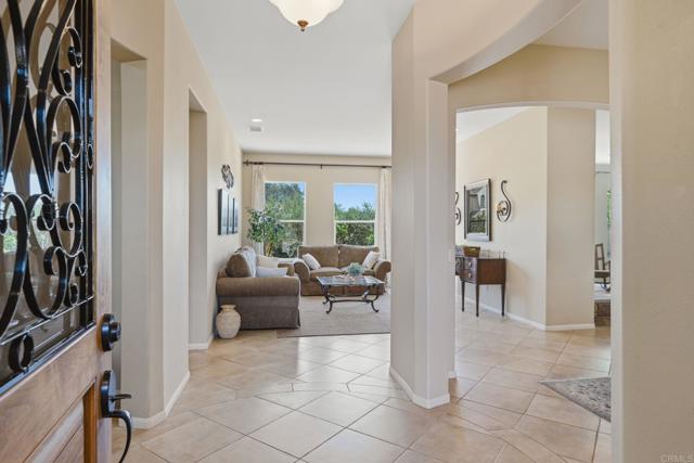 Welcome to the beautiful gated community of Brookside in North Escondido. Arrive home through impressive entry gates to a durable, decorative, exposed-aggregate concrete driveway designed to leave no tire marks. Step inside through a custom front door that's made to let in some natural light. Just off the entry is a versatile office/den/music room featuring a solar tube for added daylight. The home also offers a formal dining room ideal for special gatherings, as well as a formal living room with lovely backyard views. The adjacent family room has a cozy fireplace and a ceiling fan; the room flows seamlessly into the kitchen, creating an open and inviting atmosphere. The kitchen features a functional island for meal prep, a “convenient alcove seating area”, a ceiling fan, and newer appliances. The spacious primary bedroom measures approximately 26’ x 13’ and includes a ceiling fan, peaceful backyard views, and a sliding door with direct outdoor access. The primary bathroom offers a shower, a jacuzzi tub, dual sinks, and walk-in closets. Two additional bedrooms each include ceiling fans and are served by a full bathroom, plus a separate powder room for guests. An indoor laundry room adds convenience, while the garage features a private sauna, perfect for relaxation. Enjoy a very private backyard with no neighbors directly behind, offering easy maintenance landscaping with a sprinkler system. Mature, dwarf lemon, orange, and pear trees produce delicious fruit, and the yard has stunning views of the back side of Daley Mountain Ranch. Take in beautiful sunrises and sunsets with expansive east-to-west views. This peaceful, single-story home is located near walking trails, golf, vibrant downtown Escondido, the Center for the Arts, lakes, and a wide range of public, private, and charter school options. Experience the friendly atmosphere of Brookside and create lasting memories in this exceptional home.