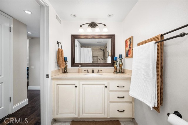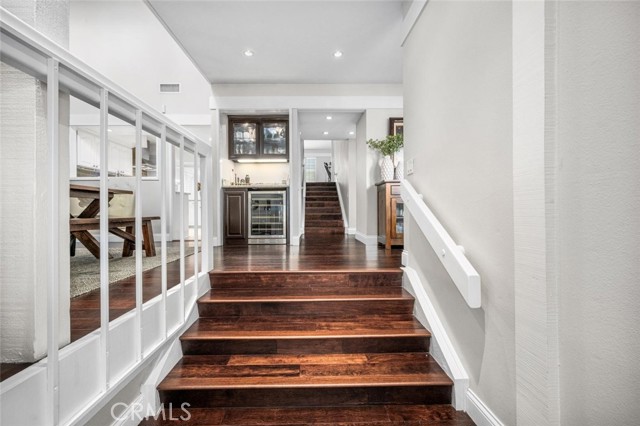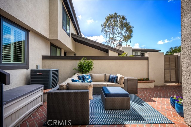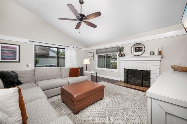 This beautifully maintained 3-bedroom, 3-bathroom tri-level home offers 2,299 sq. ft. of spacious living in a highly desirable end-unit location with an attached two-car garage featuring a newly epoxied floor. Enter through a private brick front patio into a turnkey home filled with natural light, vaulted ceilings, and an open, inviting floor plan. The living room features a cozy fireplace, while the home also includes hardwood flooring, central AC and heat, a wet bar, and abundant storage throughout. The kitchen offers a charming breakfast nook with a coffee bar, and the spacious primary suite includes an en-suite bathroom, walk-in closet, and plenty of comfort. A second en-suite bedroom provides additional flexibility for guests or family. The outdoor patio space is ideal for entertaining, and the home is conveniently located close to the community pool with easy access to major freeways, shopping, and beautiful beaches. Located within the award-winning Los Alamitos School District and within walking distance to Old Ranch Country Club, this exceptional home offers both lifestyle and location.