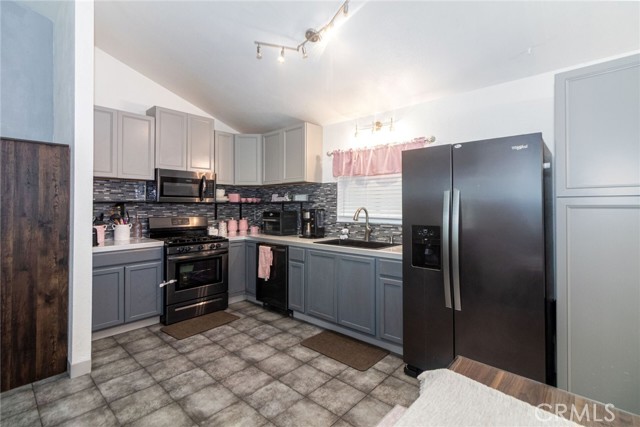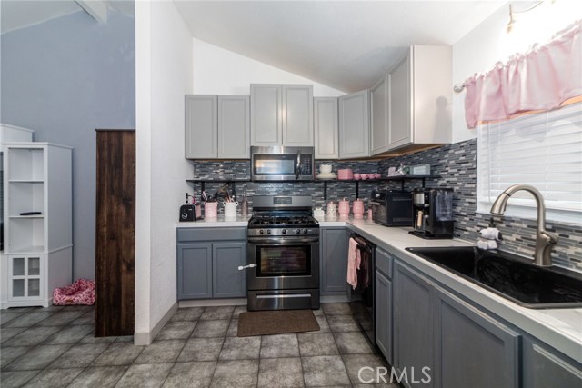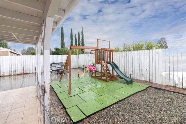 This inviting single story home features 3 bedrooms, 2 bathrooms, Eating Area, Living Room, offering a comfortable and functional layout for everyday family living. The remodeled kitchen boasts granite countertops, newer appliances. Tile flooring throughout the main areas and laminate flooring and carpet in the bedrooms, a new vanity has been installed in the principal bathroom. Enjoy peace of mind with double pane windows, a newer A/C system, and a garage roof replaced approximately two years ago. The wrought iron gate offers added privacy and RV parking for your family’s needs. Conveniently located near Cal State San Bernardino, shopping centers, and with easy access to the 15, 215, 210, and 10 freeways, making commuting and daily errands simple. With beautiful mountain views and the Littlefield Community park right across the street, this home offers the perfect blend of comfort, convenience, and an ideal setting for families to grow and create lasting memories.