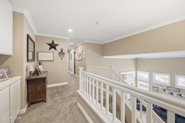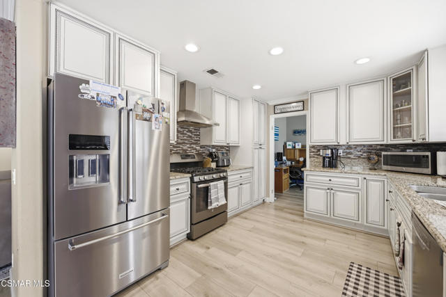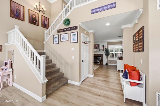 Welcome to 2615 Santa Ynez Ave in Simi Valley, a move-in ready two-story home offering 4 bedrooms, 2.5 bathrooms, and approximately 2,220 square feet of beautifully updated living space W/ Fully Owned Solar System. Ideally situated on a corner lot this home offers curb appeal from the moment you arrive boasting newer exterior hardscapes, colored concrete driveway, a front lawn area and attractive garage doors. This thoughtfully upgraded home features a spacious and functional floor plan filled with natural light. As you enter the home you'll love the vaulted ceilings, separate living and family spaces, and an additional office area. Enjoy newer vinyl flooring throughout the first level creating a modern and cohesive feel across the main living areas. The remodeled kitchen is a standout, boasting updated finishes, ample cabinetry, stainless steel appliances (including wine fridge) and generous counter space, all seamlessly connecting to the dining and family areas. Main living space includes brick fireplace with attractive white mantle. Upstairs, the primary suite serves as a private retreat with a beautifully remodeled bathroom designed for comfort and style. Primary bedroom is good sized with walk in closet, updated bath containing dual vanities with beautiful mirrors and a large standalone shower. The additional bedrooms are generously sized, offering flexibility for family, guests, or a home office. Additional interior upgrades include shutters throughout the home, ceiling fans, crown molding, recessed lighting, and a separate laundry room with cabinetry. Step outside to enjoy newer backyard hardscaping and turf areas providing low-maintenance outdoor spaces ideal for entertaining, relaxing, or customizing to your lifestyle. Backyard also includes patio cover with lighting, and a firepit with sitting area. Located in a desirable Simi Valley neighborhood close to parks, schools, shopping, and dining, this home offers the perfect blend of comfort, convenience, and modern upgrades. Don't miss this exceptional opportunity to own a turnkey home in one of Simi Valley's sought-after communities!