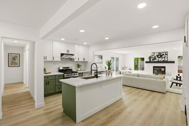 Fully renovated and move-in ready, this beautifully reimagined 4-bedroom, 3-bath residence in La Mesa offers modern style, natural light, and a functional open-concept layout. Thoughtfully updated throughout, the home features a beautifully designed kitchen with a large center island, stylish finishes, and seamless flow between the living, dining, and kitchen areas. The spacious primary suite offers a spa-inspired bath with dual vanities, a soaking tub, and a separate walk-in shower. Additional highlights include updated bathrooms, new windows, new roof, and a floor plan ideal for both everyday living and entertaining. The backyard offers a clean and versatile outdoor space to relax, gather, or personalize. A rare opportunity to own a turnkey, extensively renovated home in a desirable La Mesa location.
