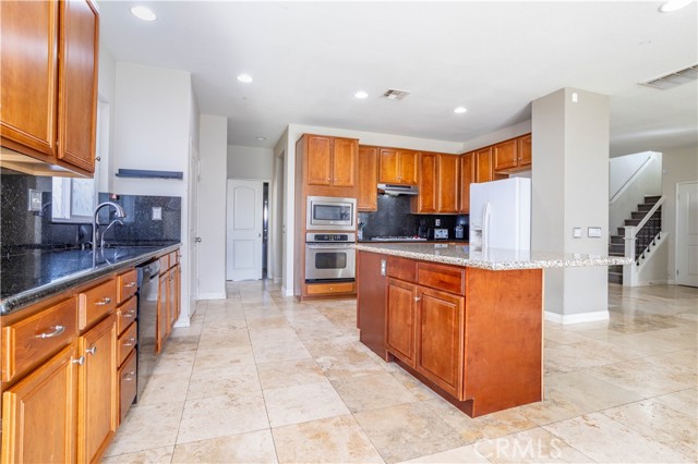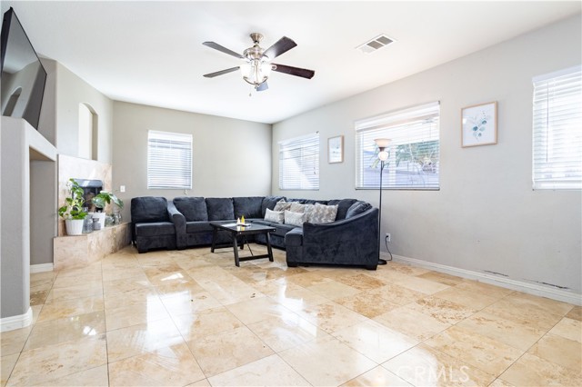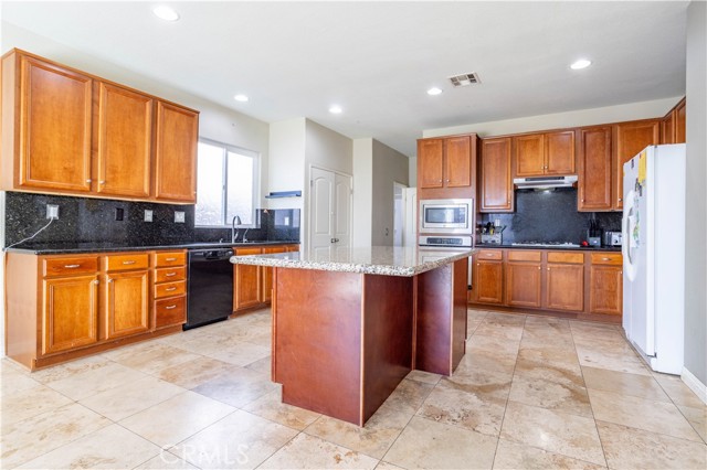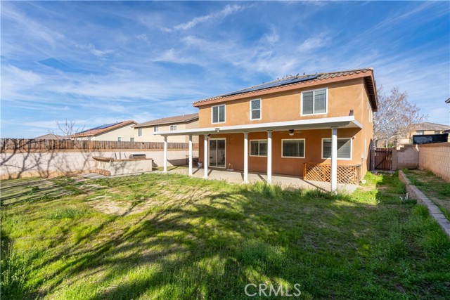 Welcome to this spacious West Lancaster home built in 2004, offering 4 bedrooms, 3 bathrooms, and 3,542 square feet of living space, ideally located on a quiet cul-de-sac and featuring a 6 KW solar system. The open-concept main level showcases elegant travertine tile flooring, formal living room, formal dining room, two separate living areas, powder room, and a laundry room. The expansive family room with fireplace and ceiling fan opens to a large eat-in kitchen designed for both everyday living and entertaining. The kitchen offers abundant cabinetry, granite countertops with matching backsplash, stainless steel appliances including cooktop, oven, microwave, dishwasher, recessed lighting, and a large center island with breakfast bar. Upstairs you will find all four bedrooms, a loft area, a full bathroom with double vanity, and an impressive 400-square-foot bonus room complete with a wet bar—perfect for entertaining, a game room, or home theater. The spacious primary suite features a large walk-in closet and bathroom with double vanity, jetted bathtub, and separate shower. Ceiling fans in all bedrooms provide added comfort. Step outside to a large backyard featuring a covered patio that runs the length of the home, complete with two ceiling fans, stamped concrete, and a built-in BBQ grill with bar area—perfect for hosting gatherings and backyard BBQs.