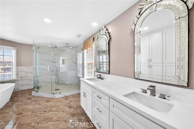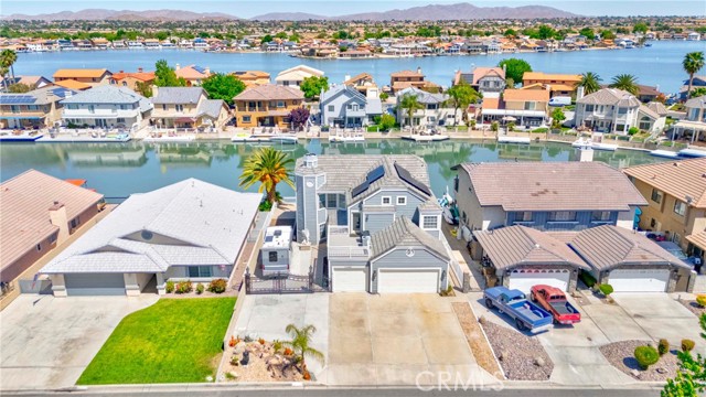 WATER FRONT l RECENTLY REMODELED l DOWNSTAIRS BEDROOM l OVERSIZED 3 CAR GARAGE l RV PARKING l LOW TAX l LOW HOA l Experience refined waterfront living in the prestigious Spring Valley Lake community, where elegance meets resort-style lifestyle. This beautifully remodeled lakefront residence offers sweeping water views, a private dock, and a rare blend of sophistication and comfort. Designed with both luxury and functionality in mind, the home features 4 bedrooms, including a desirable main-level bedroom, 3 full bathrooms, and a powder room. From the moment you enter, you’re greeted by soaring ceilings, abundant natural light, and custom crown molding throughout, complemented by fresh designer paint, rich hardwood flooring, and premium tile finishes. At the heart of the home is a chef’s kitchen outfitted with high-end Thermador appliances, granite countertops, a generous center island, and custom cabinetry perfect for entertaining or everyday living. Expansive windows and sliding doors frame breathtaking lake views, seamlessly connecting indoor and outdoor spaces. The primary suite is a private retreat, offering tranquil water views, a spa-inspired bathroom, and ample closet space. Step outside to your own waterfront oasis featuring a patio and private boat dock, ideal for enjoying sunsets and lakeside living. Additional highlights include owned/financed solar for energy efficiency, a three-car garage with sleek epoxy flooring, and dedicated RV parking with direct access, a rare convenience for luxury lakefront properties. Enjoy exclusive access to Spring Valley Lake amenities including boating, fishing, golf, parks, and 24-hour security, delivering a lifestyle that feels like a year-round vacation. This is a rare opportunity to own a turnkey waterfront estate in one of Victorville’s most sought-after communities. A must See!
