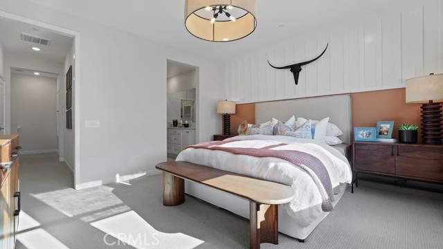 A secondary bedroom and versatile flex space can be found on the first level of this three-story townhome, providing additional shared living space or room for a home office. Upstairs, the Great Room, kitchen and dining room share an open floorplan and sliding glass doors lead to a deck for effortless indoor-outdoor living and entertaining. Three more bedrooms occupy the top level. Crest is a collection of new luxury townhomes at the Metro Heights masterplan in Montebello, CA. Onsite amenities include a resort-style clubhouse, pool, spa and much more. Located within walking distance of The Shops at Montebello and Montebello Town Square, residents also enjoy proximity to the CA-60 freeway for easy access to downtown Los Angeles for more shopping, dining and entertainment options.
