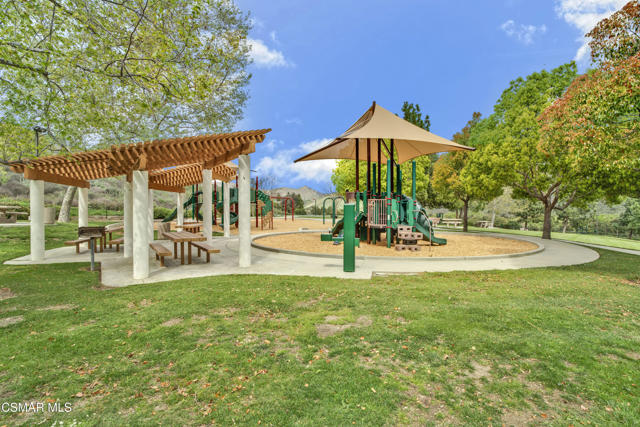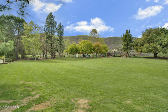 Welcome to this beautiful move-in-ready 4-bedroom, 3-bathroom pool home in the heart of Westlake Village. A special offering in the centrally located Westlake Canyon Oaks neighborhood, this home is full of charm inside and out. Warm, classic wood floors flow from the front entry through the spacious and versatile living and dining rooms, where a custom skylight fills the space with natural light. Down the hall, a conveniently located downstairs bedroom and remodeled full bathroom offer the perfect setup for guests, a home office, or flexible everyday living. The updated kitchen features sleek granite countertops with a matching backsplash, beautiful wood cabinetry, classic pendant lighting, and stainless steel appliances. The eat-in kitchen includes a breakfast bar and a separate dining area, all opening through classic French doors to the incredible backyard. Upstairs, two spacious guest bedrooms are connected by a Jack-and-Jill bathroom with a large vanity and glass shower. The large primary suite offers mountain views and wall-to-wall closet space with ample storage. Designed for both relaxing and entertaining, the backyard has everything you need: a sparkling pool and spa, a huge grassy area for kids or pets, a built-in BBQ, and large side yards on both sides, all set against views of Ladyface Mountain. Additional highlights include a 3-car garage with extra storage space and a large laundry area. Ideally located close to parks, trails, and all of Westlake Village's premier shopping and dining, this is an exceptional opportunity to own a wonderful home in one of the area's most desirable neighborhoods.