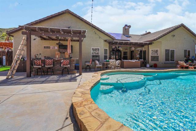 Rancho San Diego living at its finest! Attached 2BR ADU with kitchen plus plans for a detached ADU. Private 2-acre oasis with stunning 300° views. This custom single-story home features vaulted ceilings, a dual-sided fireplace, and a chef’s kitchen with self-closing drawers, double ovens, and a pull-out spice rack. Enjoy upgraded energy-efficient A/C and furnace, tankless water heater, and water softener. Spacious bonus room (included in sq ft) is perfect for a game room, office, or flex space. The primary suite offers two walk-in closets and direct backyard access. Resort-style outdoor living with a pool, waterfall, Jacuzzi under a gazebo, BBQ area, lush landscaping, and fenced dog yard—ideal for entertaining. Designed for semi-off-grid living with leased solar, private well, and updated septic. Two driveways, RV/trailer parking, and flat usable land add versatility. Minutes to Sycuan Casino & Singing Hills Golf Course. Rancho San Diego living at its finest! Attached 2BR ADU with kitchen plus plans for a detached ADU. Private 2-acre oasis with stunning 300° views. This custom single-story home features vaulted ceilings, a dual-sided fireplace, and a chef’s kitchen with self-closing drawers, double ovens, and a pull-out spice rack. Enjoy upgraded energy-efficient A/C and furnace, tankless water heater, and water softener. Spacious bonus room (included in sq ft) is perfect for a game room, office, or flex space. The primary suite offers two walk-in closets and direct backyard access. Resort-style outdoor living with a pool, waterfall, Jacuzzi under a gazebo, BBQ area, lush landscaping, and fenced dog yard—ideal for entertaining. Designed for semi-off-grid living with leased solar, private well, and updated septic. Two driveways, RV/trailer parking, and flat usable land add versatility. Minutes to Sycuan Casino & Singing Hills Golf Course.